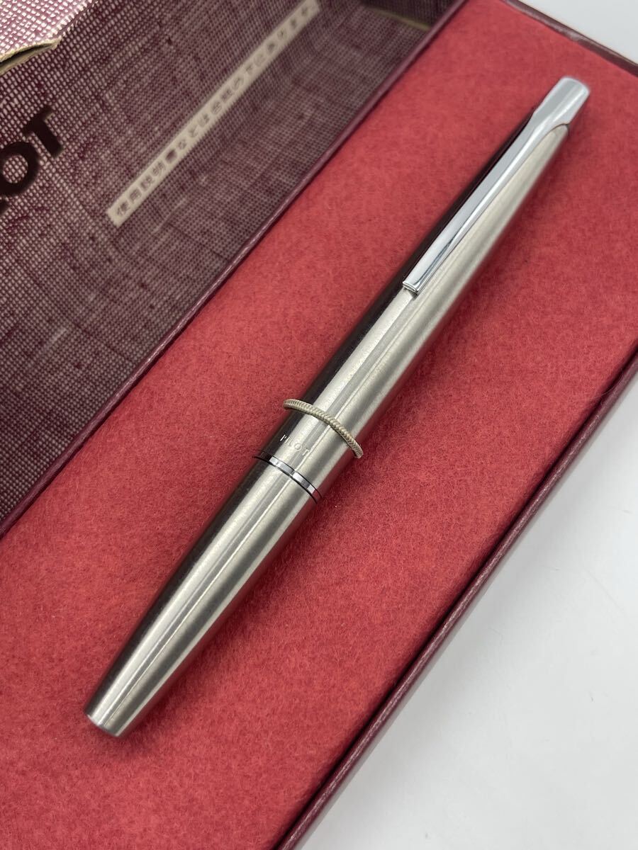 ご覧いただきありがとうございます。コレクターに人気の一体型ステンレスニブを備えたPILOTのヴィンテージ万年筆です。流線型のオールメタルボディに、精巧な一体型ペン先(ブリーザーホール付)が美しい一本。コレクションはもちろん、実用にも映えるお品です。