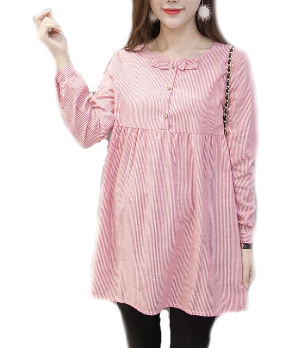 【新品・未使用】ワンピース ピンク L ゆるい リラックス感 リボン ラフ きやせ ワンピ チュニック マタニティ