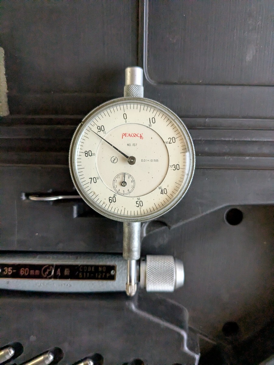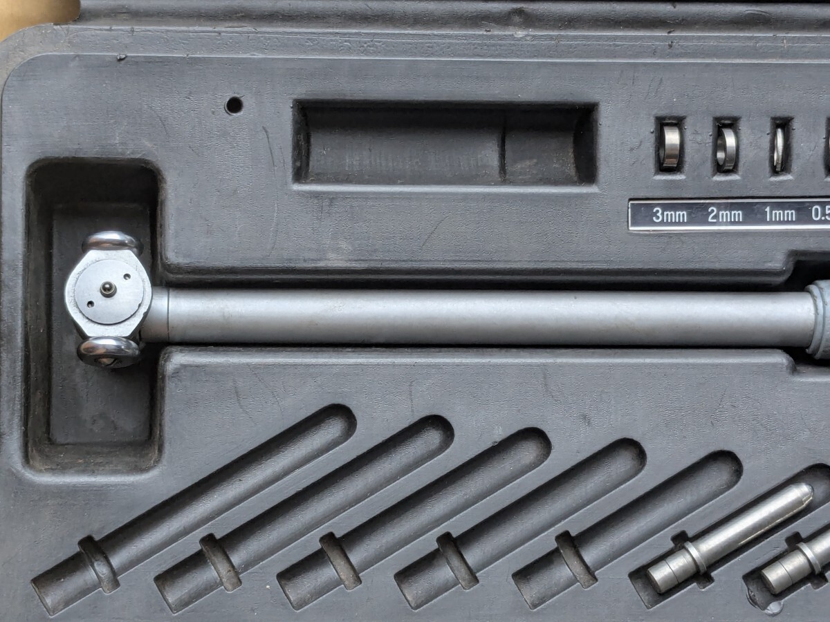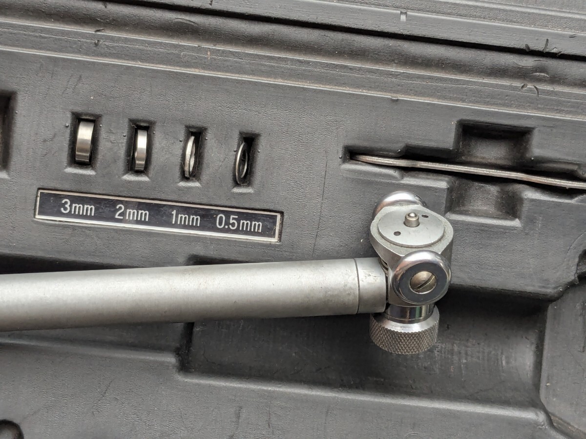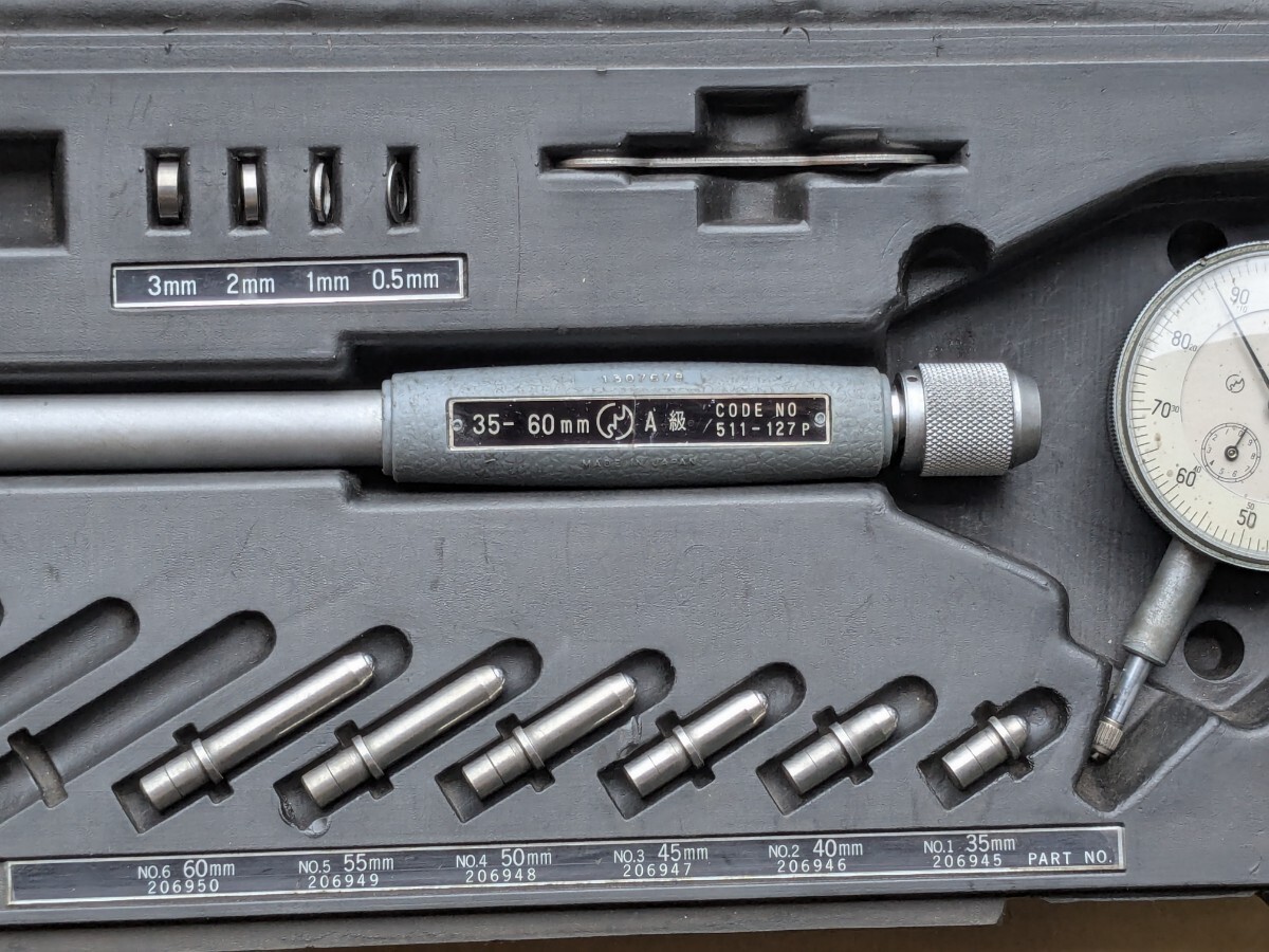 アンビル、ワッシャ、ダイヤルゲージが揃っています。