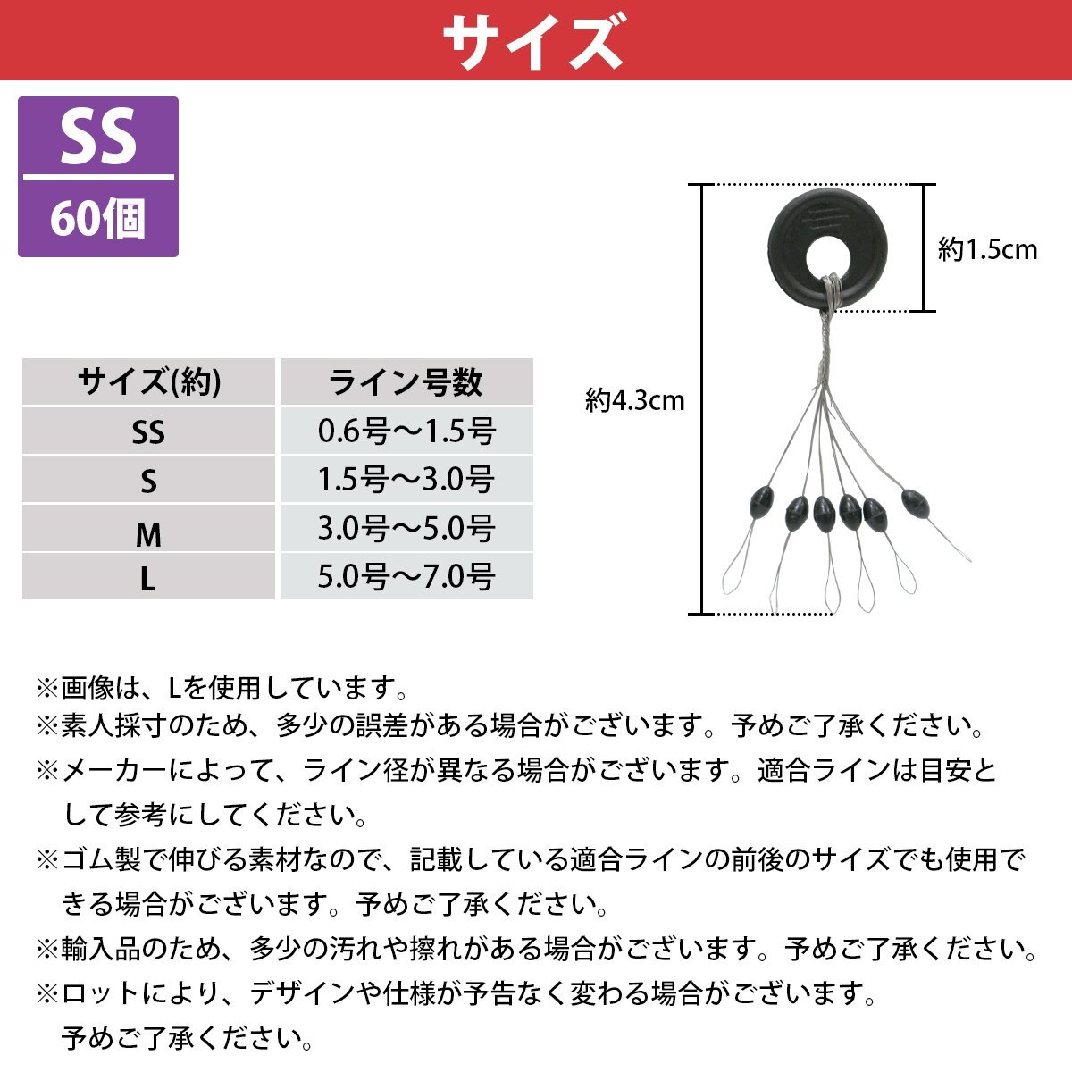 【新品即納】浮き釣りの必需品!浮き止めゴム 黒 SSサイズ 0.6号~1.5号 60個セット 釣り ストッパー ゴム オリーブ シンカーストッパー