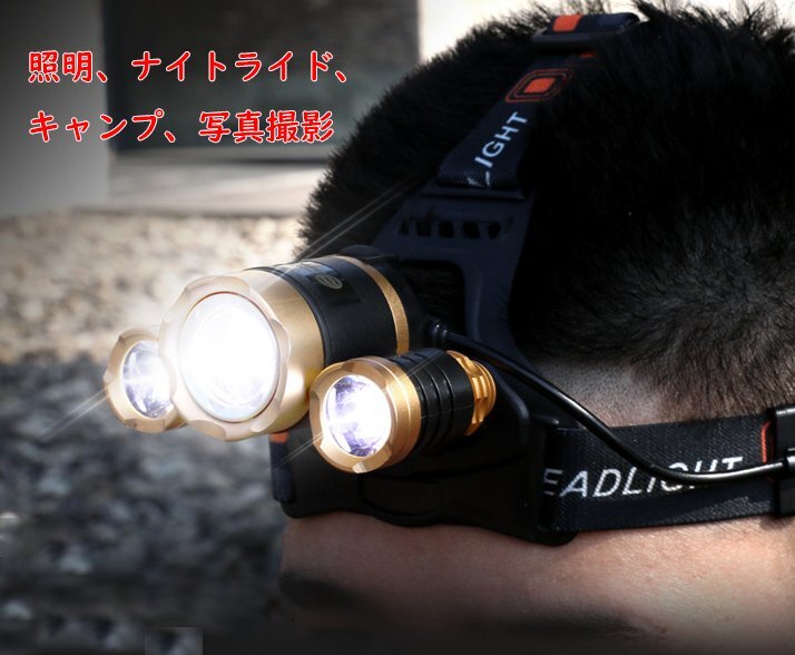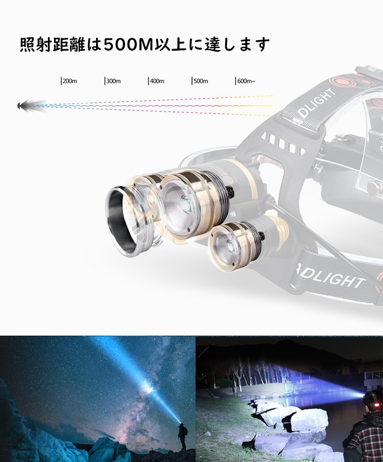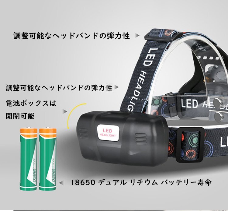 【 超高輝度・3つの光源・電池・充電式度LEDライト・伸縮性があるゴムバンド】新型電池・、明るさは通常の小型ヘッドライト照明の約20倍です、寿命は150,000時間です。大型レンズを採用し、絞りが大き、120°広角照明。進化版LED、照射距離が遠い。衝撃に強く丈夫で耐久性が強いです,耐久性も最高です。この明るさなら夜の散歩や暗い場所での活動に大活躍!ヘッドバンドの素材を完全にアップグレード 。ヘッドバンドの裏側には起毛加工、やわらかな肌へと導きます。 快適さを向上させます。 高弾性のヘッドバンドは、通気性と調整可能な弾性を備えています。長時間ヘッドに着用しても疲れません。