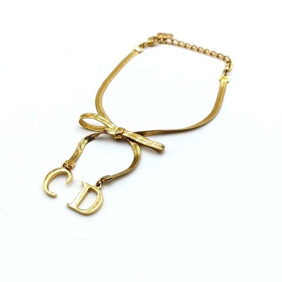 ・送料無料 美品 クリスチャンディオール Christian Dior ブレスレット バングル アクセサリー 小物 リボン ロゴ ゴールド系 レディース