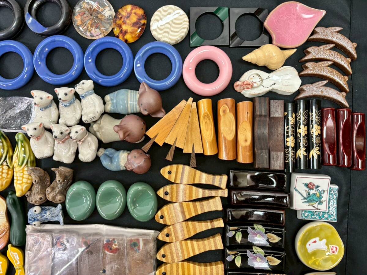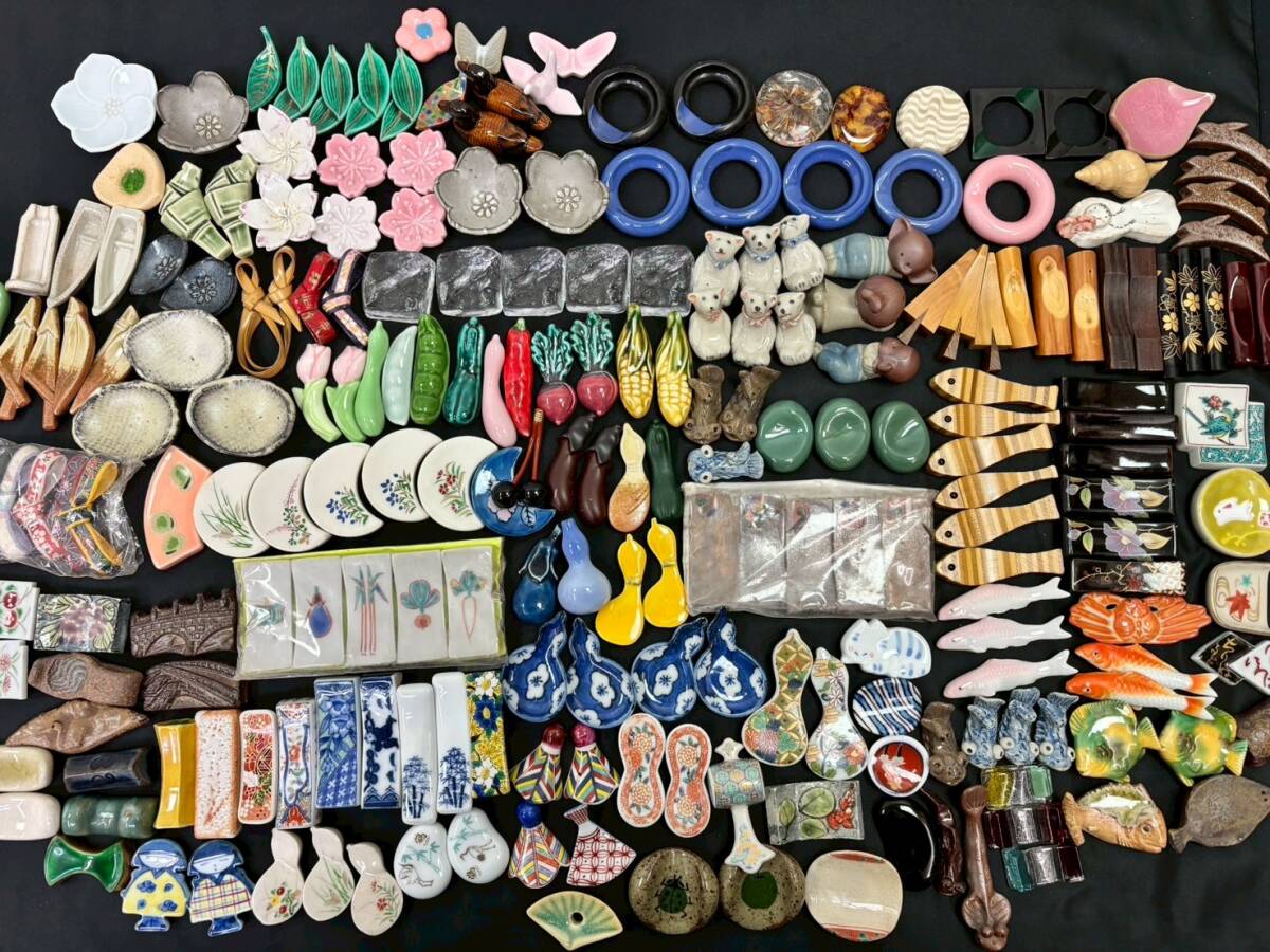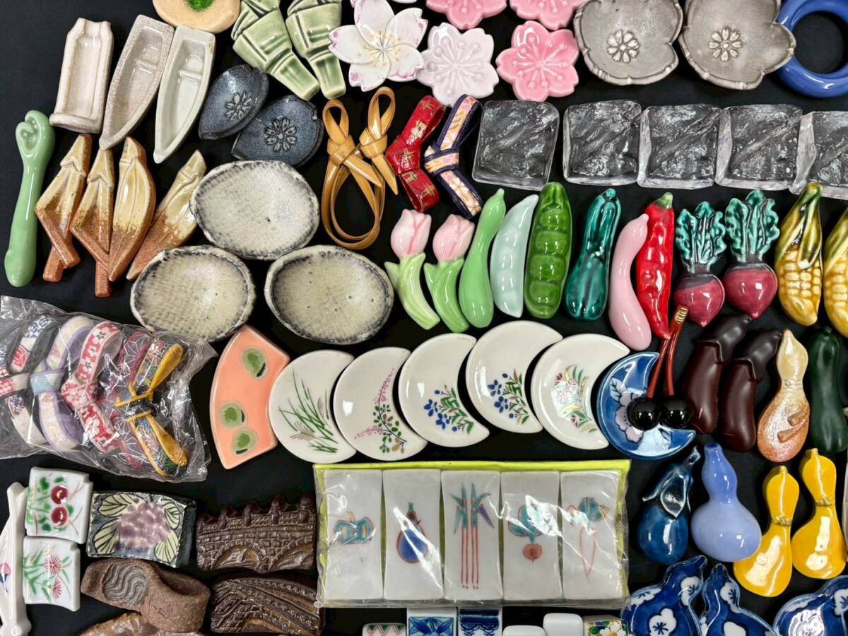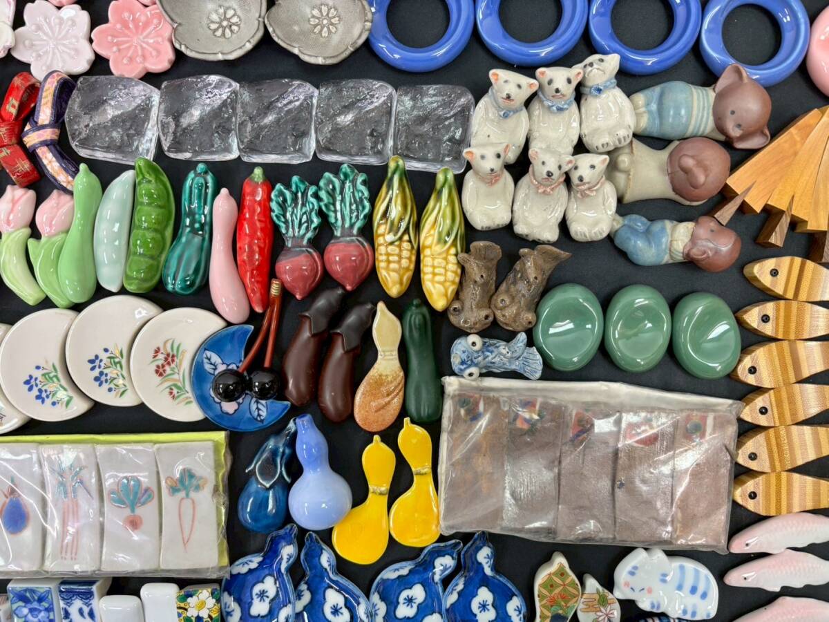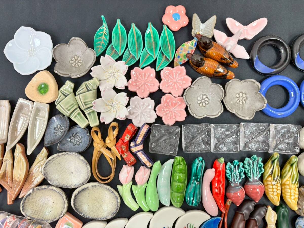 S0929G 箸置き まとめ セット 和食器 花のれん 天然木 紅紫檀 縞黒壇 丸谷焼 かに道楽 動物 野菜 花 蝶々 魚 ガラス 木製 陶器 伝統工芸
