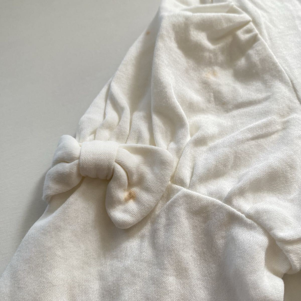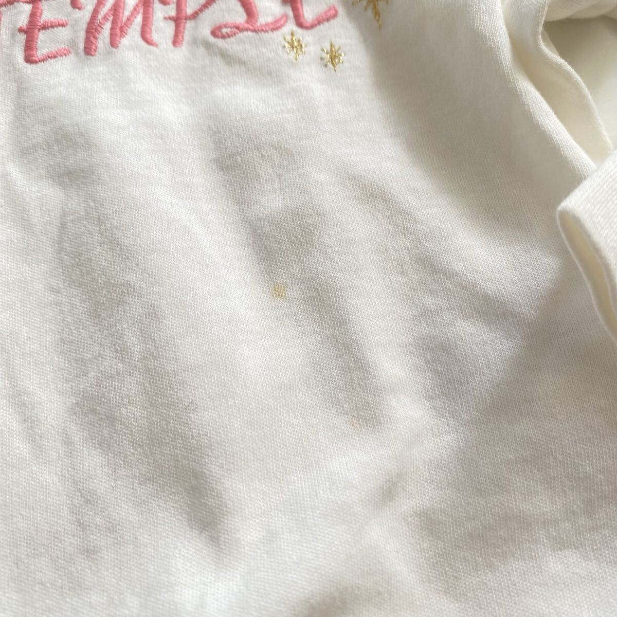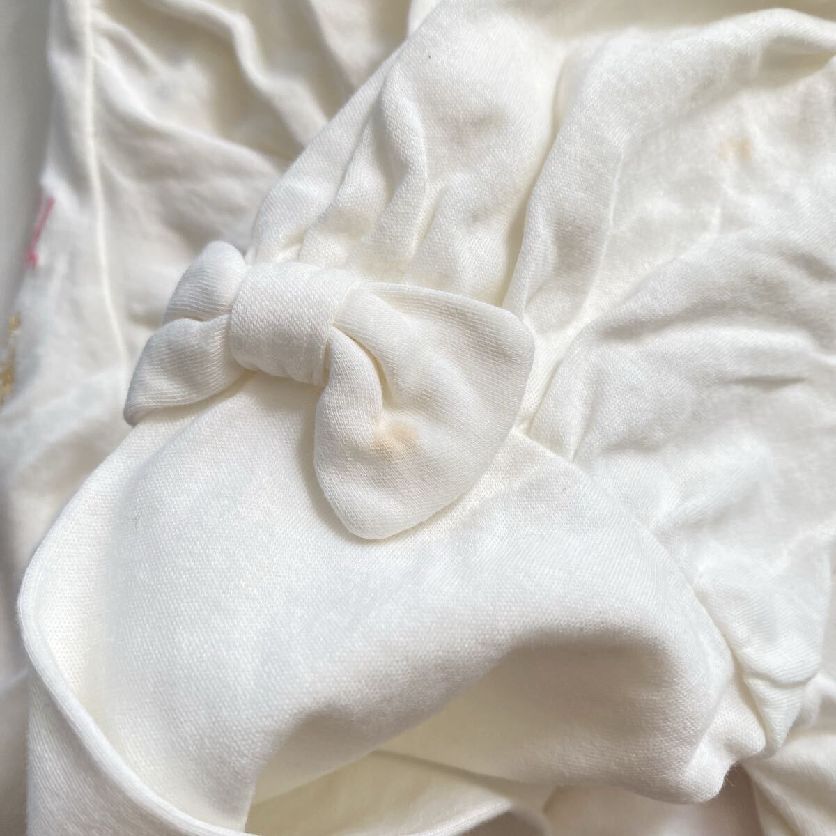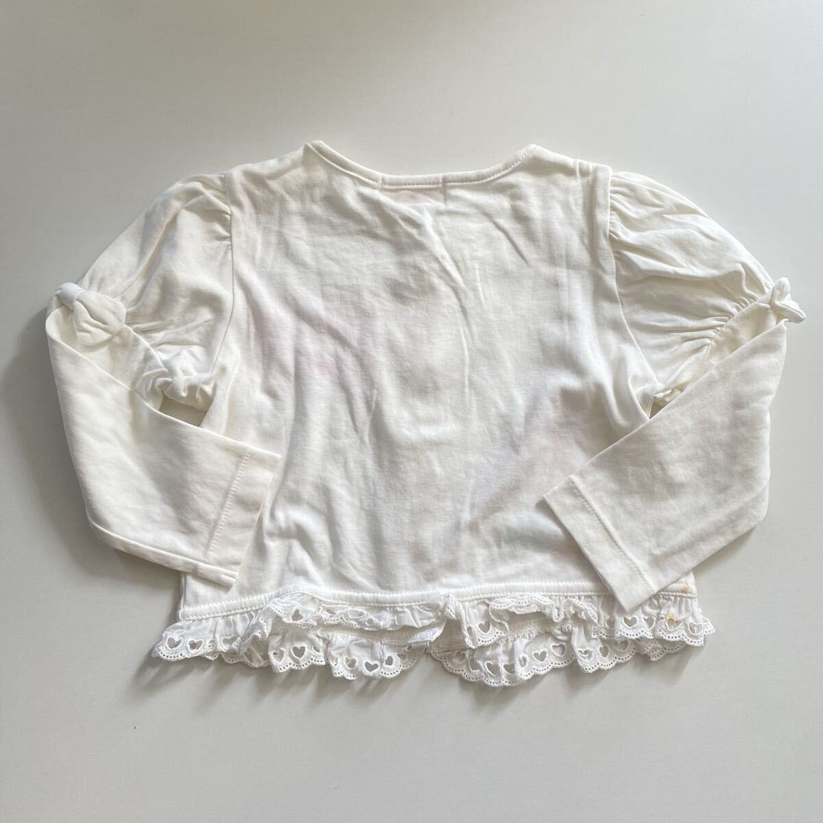 メリーゴーランドの刺繍、裾はハートのパンチングレース、腕にはリボンがありとても可愛いです。