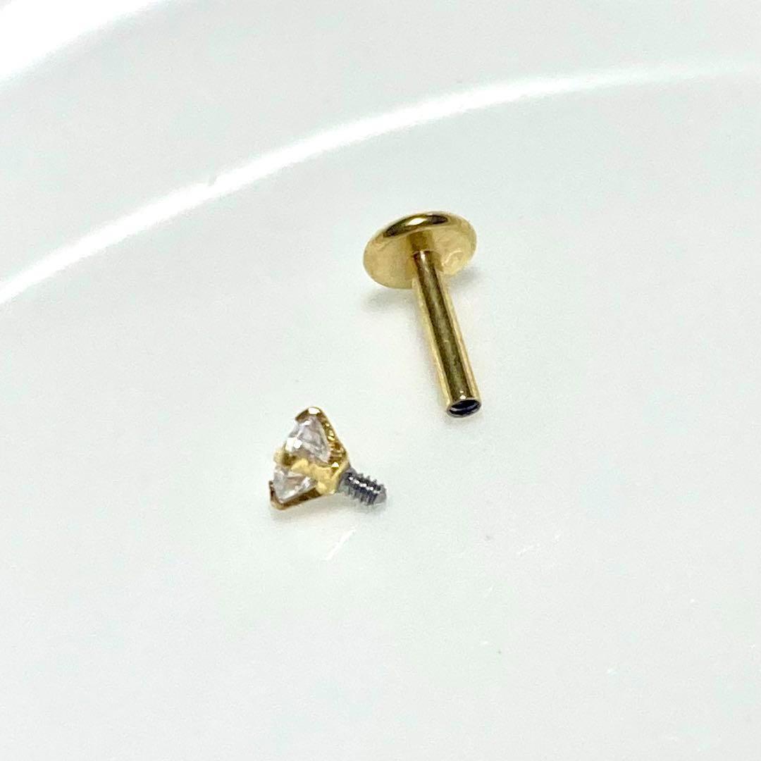 【1ペア】16G医療用ステンレスジルコニア3mm ボディピアス ゴールド czラブレット