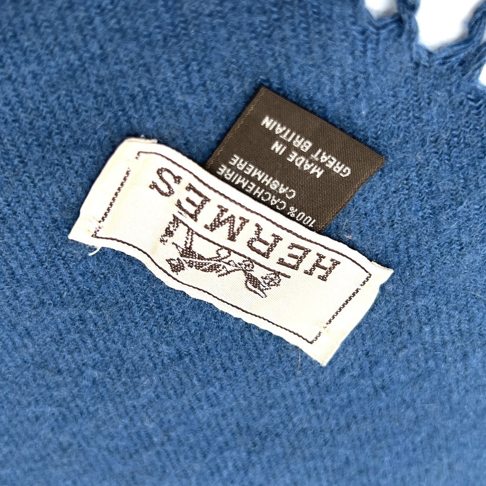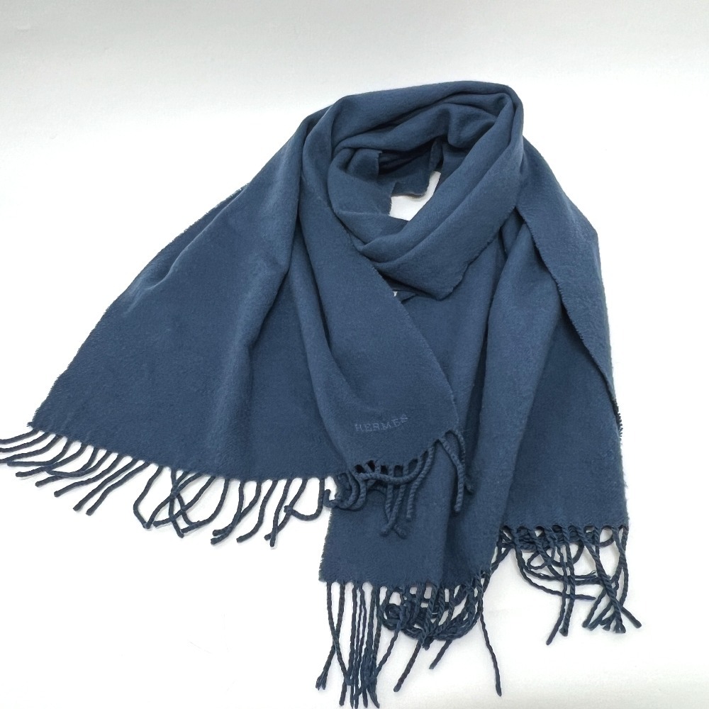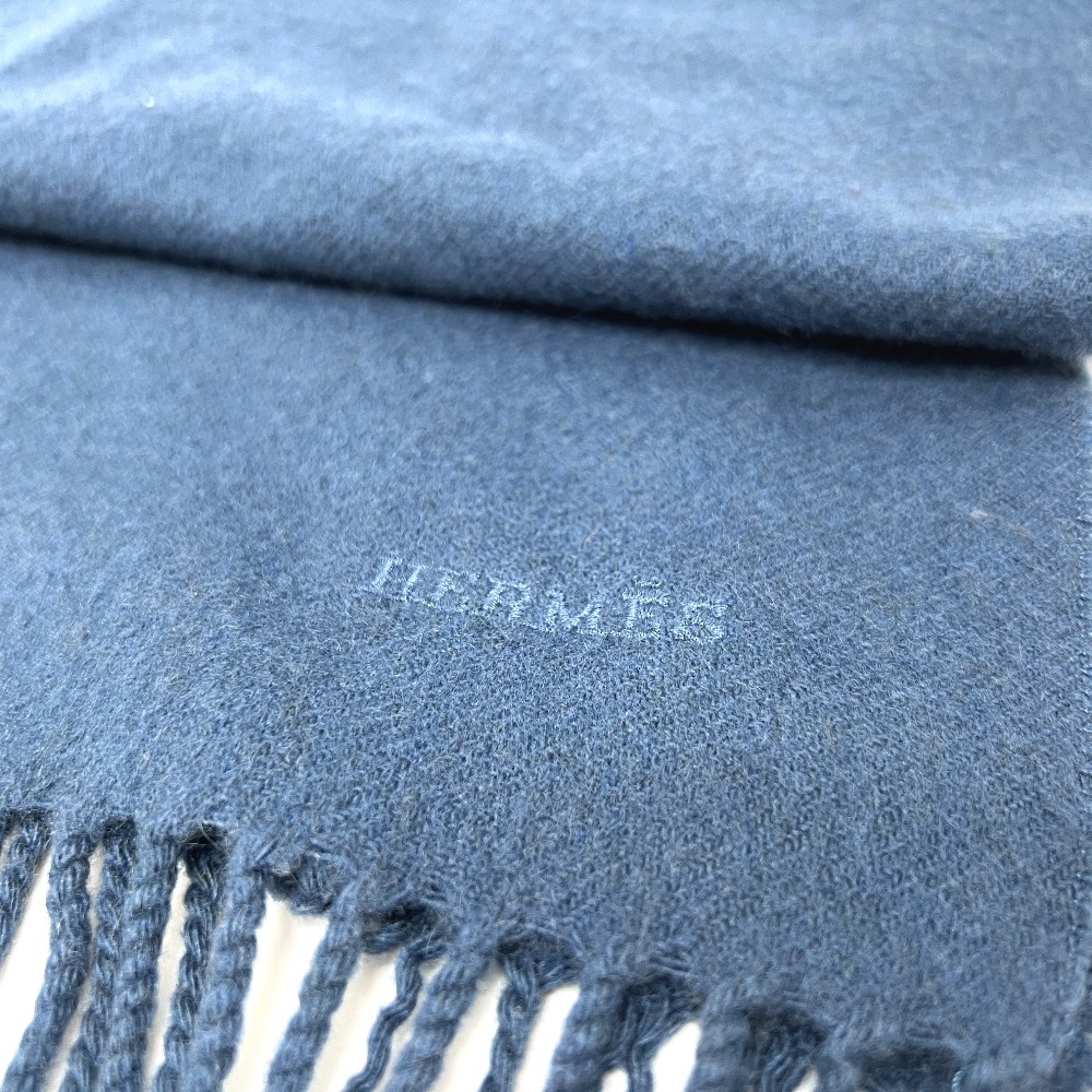 HERMES エルメス ロゴ刺繍 アパレル小物 マフラー ブルー ユニセックス【中古】