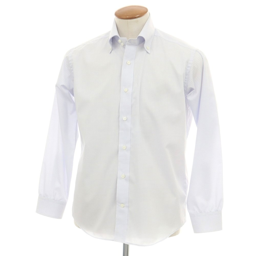 【中古】スキルタ SKYRTA コットンポリエステル ギンガムチェック ボタンダウン ドレスシャツ ブルーグレー【サイズ39】
