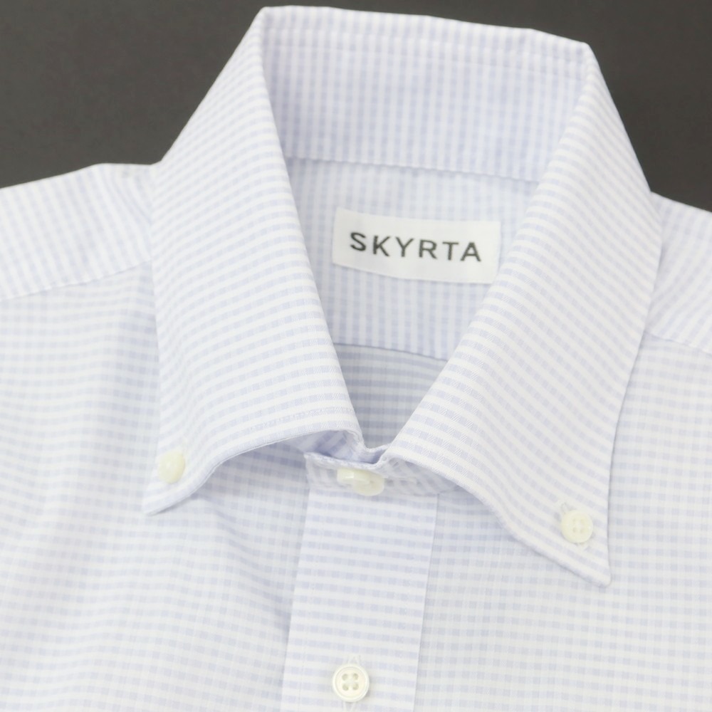 ・オールシーズン ・コットンポリエステル ギンガムチェック ボタンダウン ・SKYRTA ・日本製 ・透け感 あり ・ボタンダウンカラー ・前立て付き ・ドゥエボットーニ