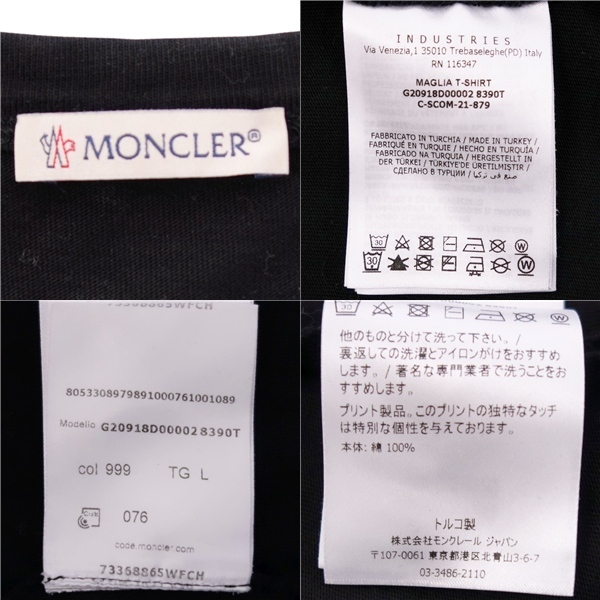| 美品 モンクレール MONCLER Tシャツ 2021 カットソー ロングスリーブ 長袖 ロゴ トップス メンズ L ブラック |