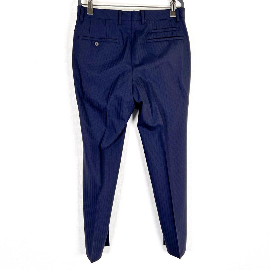 男性用 紳士用のネイビー系のストライプスーツ ジャケット×パンツ 上下セット セットアップ 2点セット ビジネススーツ 背広です。中古品ですが目立つ傷や汚れもなく、まだまだ使えます。古着 パーソンズフォーメン 服良株式会社