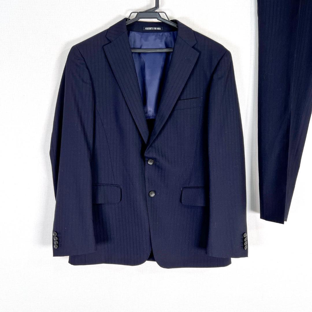 【PERSON'S FOR MEN】パーソンズフォーメン ネイビー ストライプ スーツ 上下セット 2点セット セットアップ 紳士服 メンズ A-3【a033】