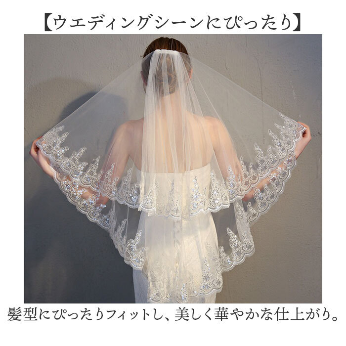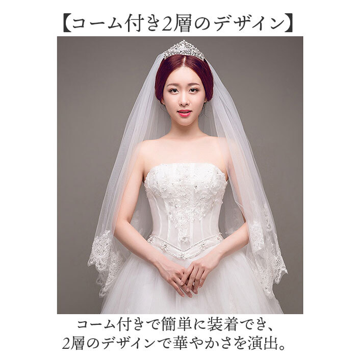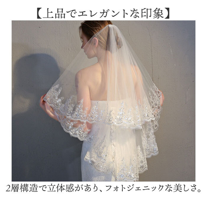 商品説明 | ・・【コーム付き2層のデザイン】 ・コーム付きで簡単に装着でき、2層のデザインで華やかさを演出。 ・ ・【繊細なレース刺繍】 ・細やかなレース刺繍が施され、優雅で上品な印象を与える。 ・ ・【ウエディングシーンにぴったり】 ・髪型にぴったりフィットし、美しく華やかな仕上がり。 ・ ・【上品でエレガントな印象】 ・2層構造で立体感があり、フォトジェニックな美しさ。 ・ ・【簡単に装着できるコーム】 ・装着が簡単で、手間なく美しいベールを演出。 |