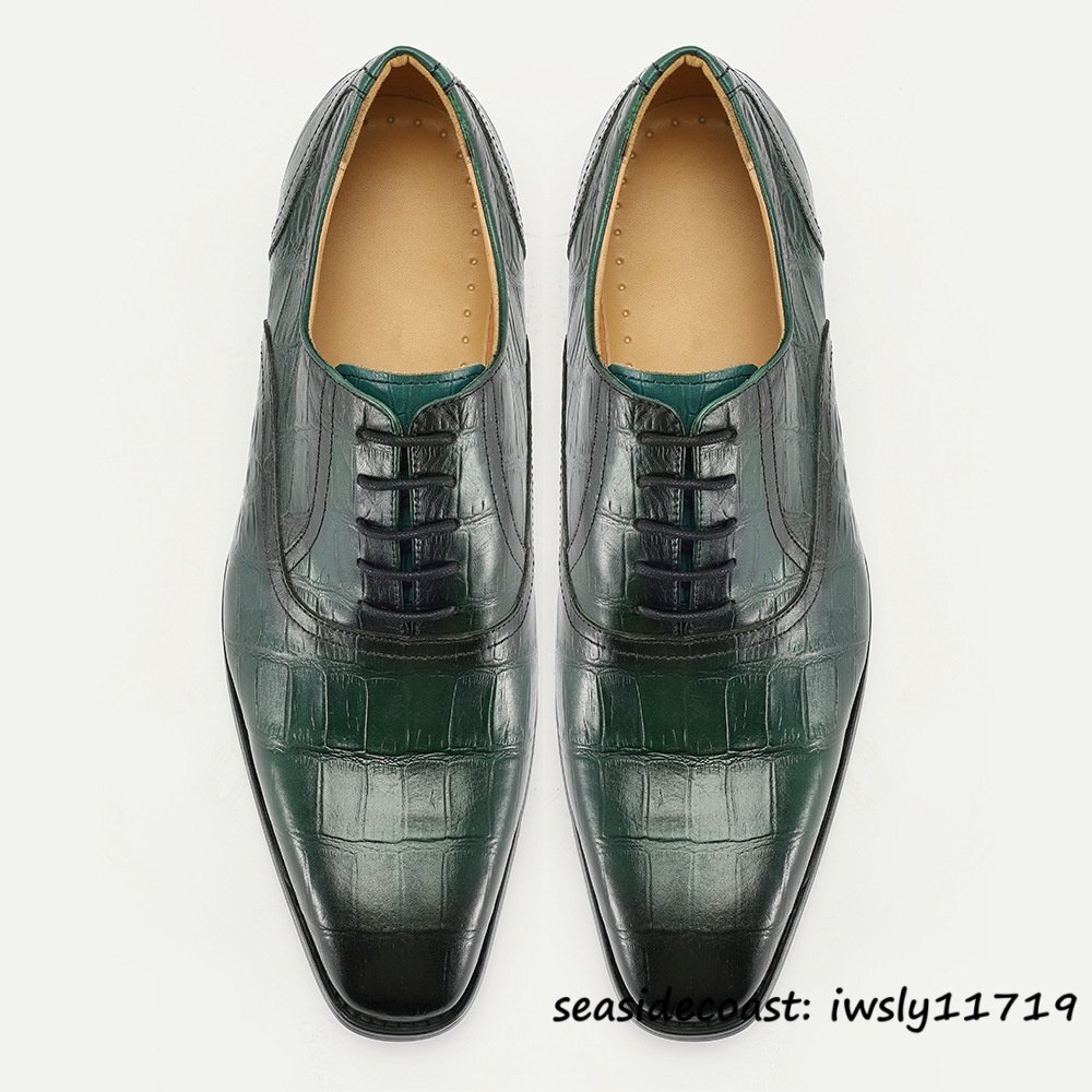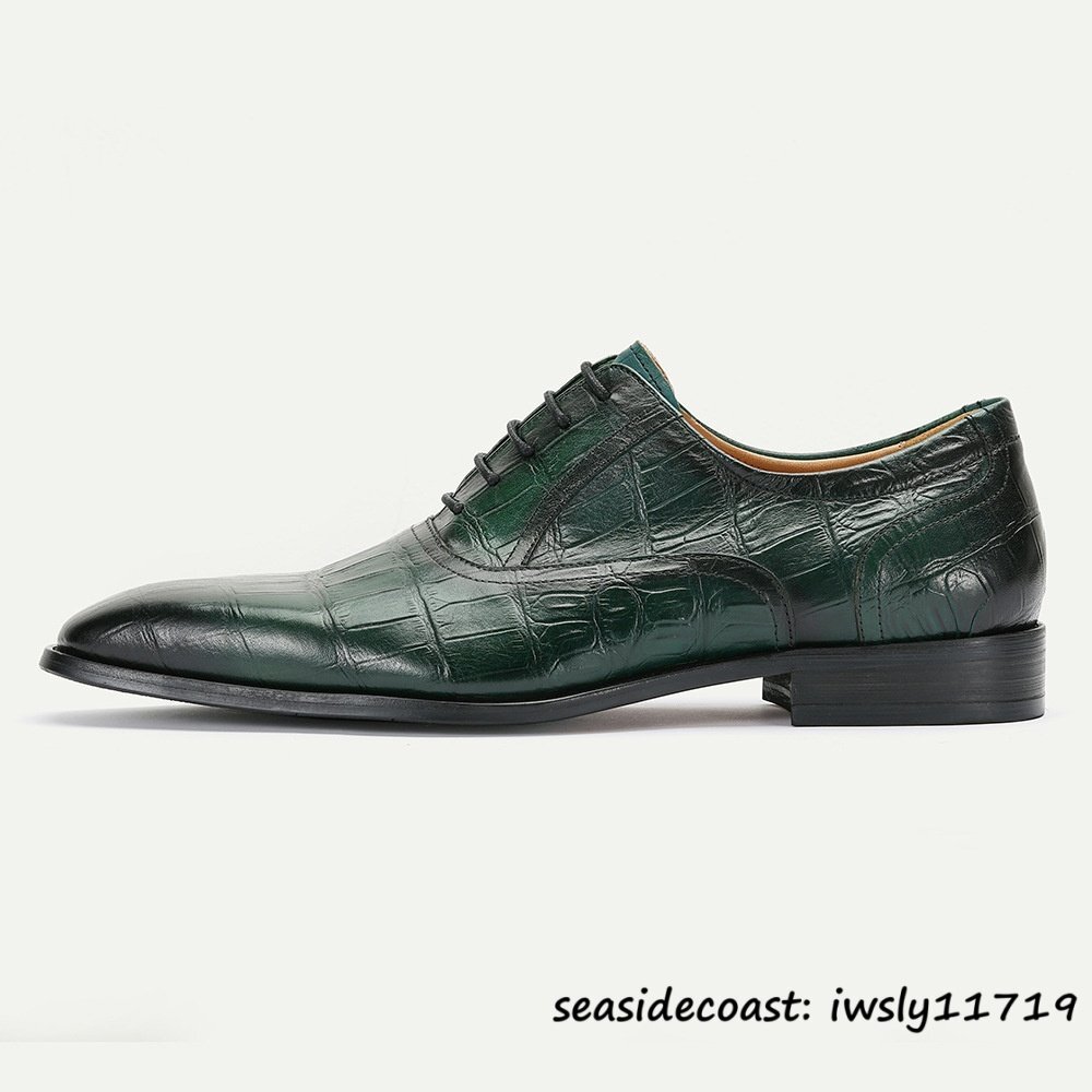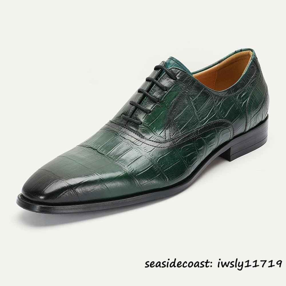 定価11万超★新品 ビジネスシューズ 本革 職人手作り 鰐柄 高級本革 レザーシューズ 紳士靴 革靴 冠婚葬祭 ドレスシューズ 通勤 25.0cm