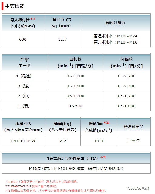 M16高力ボルト・F10T 約290本 締付け時間 約2.0秒