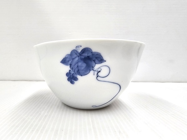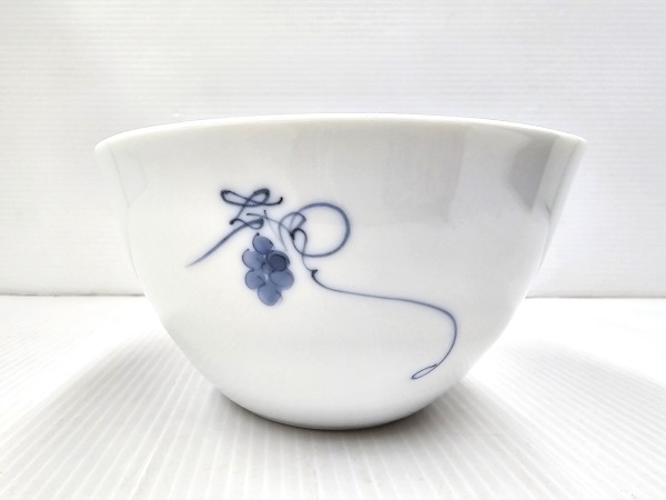 【未使用展示品】 天草 高浜焼 寿芳窯 葡萄 フリーボール そり型 大 セット ペア 天草陶石 白磁 どんぶり 茶碗 ○YR-17291○
