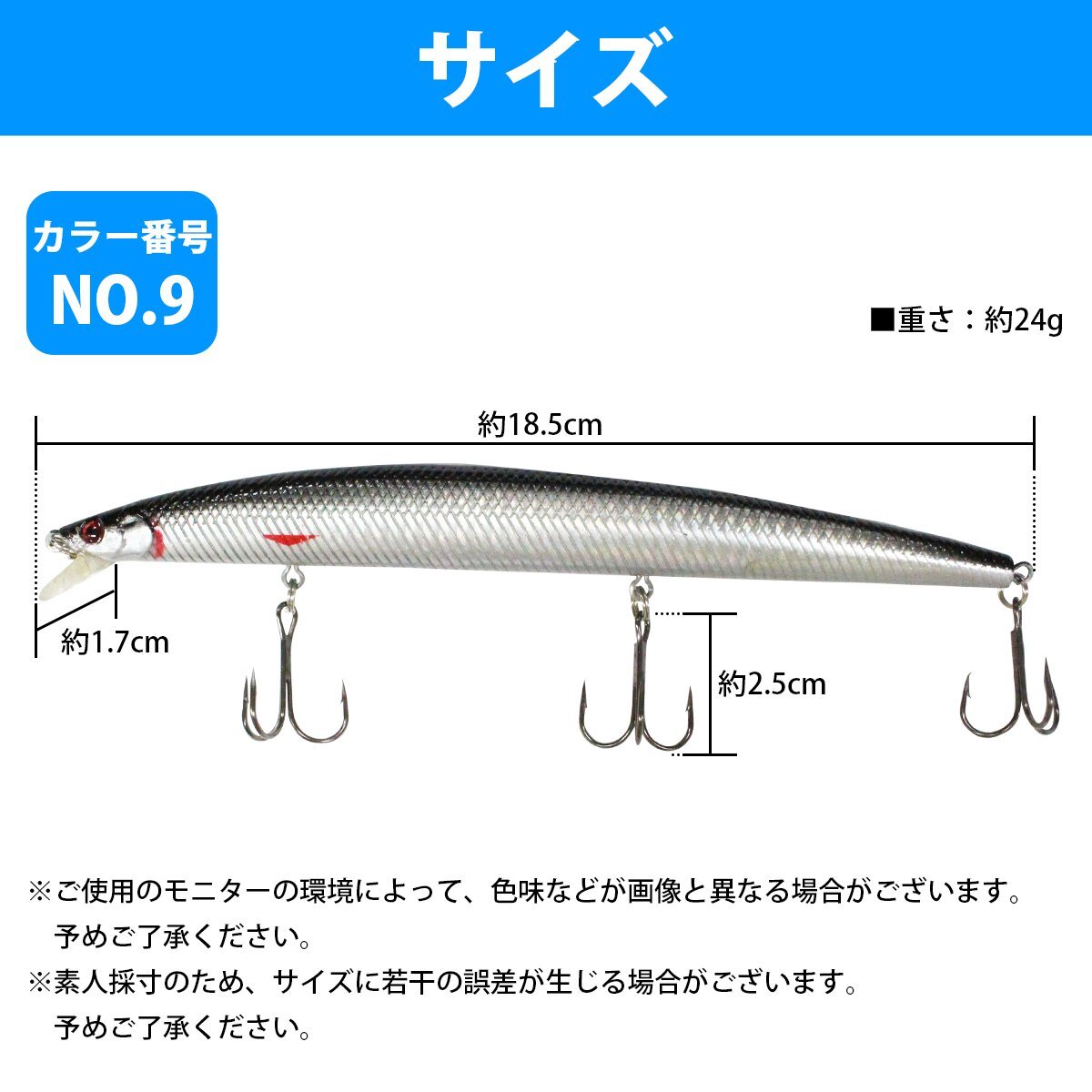 『No.9/単品』ハードルアー ビッグミノー 180mm/18cm 爆釣り ルアー フィッシング 24g シーバス ヒラメ 青物 疑似餌 擬似餌