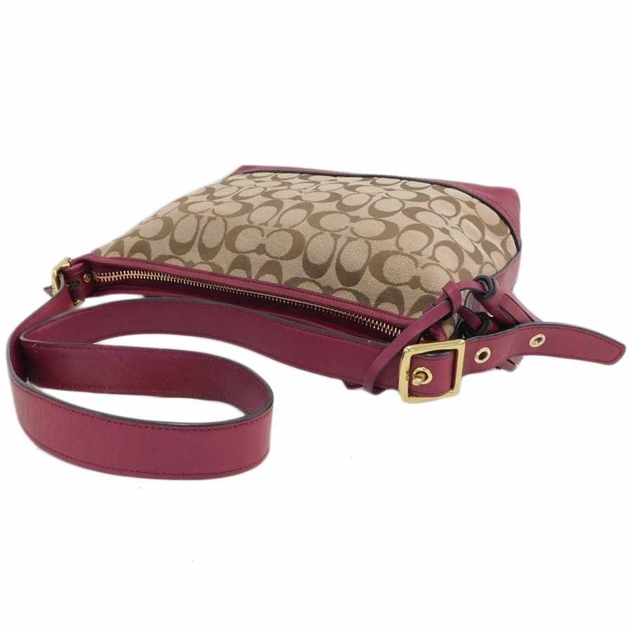 1円■ 美品/コーチ/ショルダーバッグ/F25664/ブラウン×ボルドー系/キャンバス×レザー/シグネチャー/COACH ■E.Bmr.zE-17[中古]