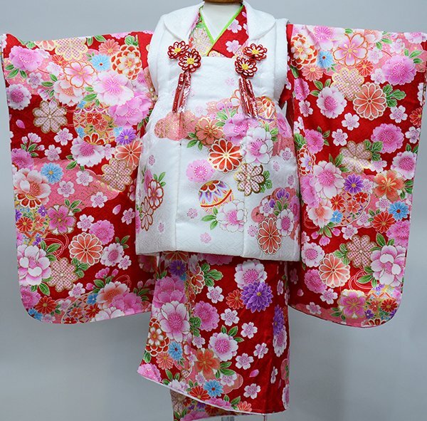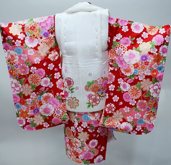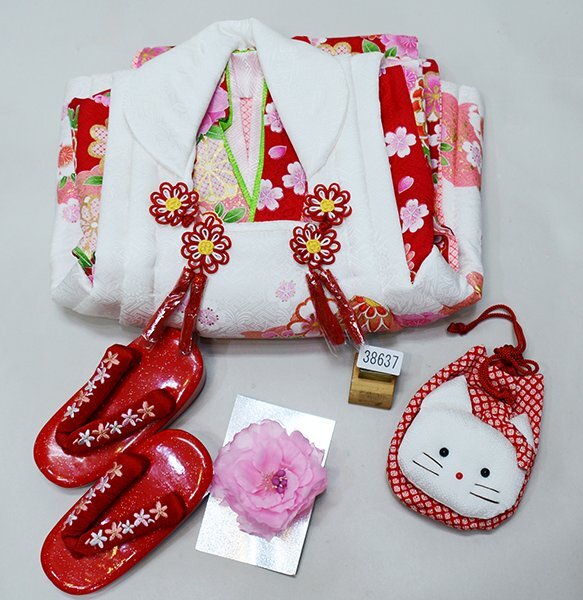 | 項目 | 三歳祝着フルセット ・着物 ・長襦袢 ・被布コート ・巾着 ・髪飾り ・草履 ・半襟(襦袢に縫い付け済み) ・伊達衿(縫い付済) ・付け紐2本(着物縫付済) ・着付け説明のご案内(ご要望のお客様のみ、詳しくは以下明記しております) |
