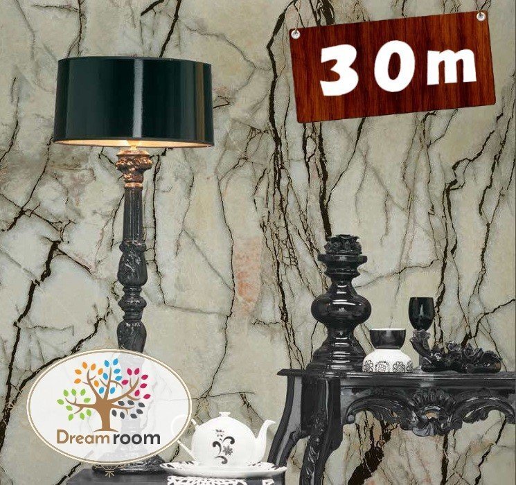 【 30m 】 大理石模様 ブラック×ホワイト B05 壁紙 シール 61cm幅 DIY 防水 カッティングシート クロス 糊付き ウォールペーパー
