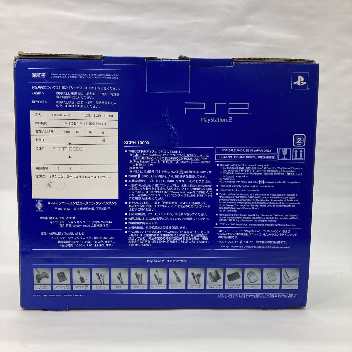 ■コメント SONY(ソニー) PS2 プレイステーション2 本体 初代モデル/初号機/初期型 SCPH-10000 ブラック PlayStation2 プレステ2 の希少未使用(付属完備)になります。 PlayStation 2(PS2)の記念すべき初期型モデル SCPH-10000 は、2000年3月に日本で発売された初代「ファット型」の原点であり、まさに“初期モデル”の代名詞的存在です。しかも、PCMCIAスロットを搭載した唯一のモデルで、拡張ベイではなく外付け方式でのハードディスク接続を可能にし、拡張性への道を切り開きました。さらに、Emotion Engine と Graphics Synthesizer を搭載し、当時の家庭用ゲーム機としては突出した処理能力を誇り、リアルかつ高度な3D表現を実現しました。くわえて、DVD-Video再生や光デジタル音声出力の採用などにより、ゲーム機以上の「マルチメディア機」としての地位も築き上げました。その他、堅牢な筐体設計と信頼性の高い内部構造で、後年の「スリム型」への移行にもつながる基本設計の礎となった名機であり、その存在感は今なお語り継がれています。現在、非常に流通希少かつ高額な未使用になりますので、この出品に是非! ■状態 前オーナー様(ゲームコレクター様)が所有していた未使用品です。肉眼で確認できる目立つ経年劣化や保管劣化は、ほぼ皆無に近いです。保護シールも付いており、付属もコントローラー(未開封)やメモリーカード(未開封)をはじめ大半が未使用や未開封で完備。 ※リユース品、サンプル品やレンタル品やレンタル落ち品、海外品、コピー品ではなく日本版正規販売品(外資メーカー正規輸入品含(画像.JAN等参照))です。 ※本体のみならず付属(バッテリー付属の品のバッテリー自然劣化含)や箱やパッケージを含む全ての詳細状態記載や画像掲載はできない、しない場合がございます。尚、画像掲載や記載ないものも悪意ある物ではなく、記載掲載の有無や程度(個所数や個数等も含)に関係なく外観でのクレームはご遠慮下さい。新品や未使用や展示品も保管劣化、展示劣化の主観違い・見落としもある場合がございます。ホコリ付着や手あか、傷、スレ跡、画面や端子やボタンや溝への劣化も同様でございます。使用に支障はございませんので、ご容赦・ご理解お願い致します。 ※未使用(未開封や予めの完全未使用記載を除く)の電化製品ですが、ショップ等で電源不良や液晶不良がないかの確認の為に1度通電のみさせている場合が稀にございます。予めご了承下さい。 発送:ゆうパック京都発100サイズ |