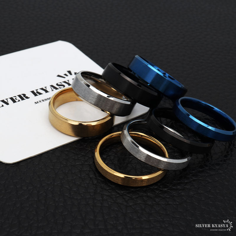 センターに艶消し加工の入ったシンプルなリング。サイドにはエッジカットが入っており、すっきりとした印象与えます。