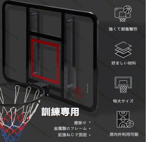 飛散防止と耐久性のあるポリカーボネート:高強度のポリカーボネート素材で作られたバスケットボールのバックボードは、バックボードを飛散させません。また、リムはプラスチック製、ネットは耐候性ナイロン製で長寿命です。