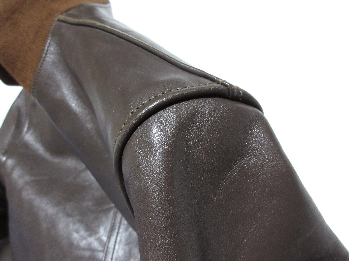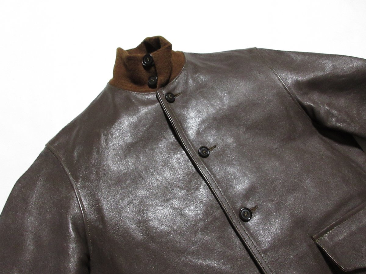 | ●定価:198,000円税込 ●カラー:シールブラウン ●サイズ表記 38 *実寸(平置き 約㎝) ・袖丈 63 (肩ステッチから袖先) ・肩幅 44 (肩ステッチから肩ステッチ) ・身幅 53 (脇下から脇下) ・着丈 61 (後ろ襟元付け根から裾) (※袖丈、身幅はフロント側から、肩幅、着丈は背中側をラインに沿って測定しています。多少の誤差はご了承下さい) ミルスペックが厳格ではなかったおおらかな時代に様々なバリエーションを持つタイプA-1ジャケット、オリジナルのディテールでホースハイドにて表現したモデル。ボタンはベークライドが開発される前時代のため、水牛の角を削り出した贅沢なものを使用。飛行服発達史の礎的存在の同ジャケットはミリタリーカジュアルに留まらず、幅広い着こなしを許容してくれる。