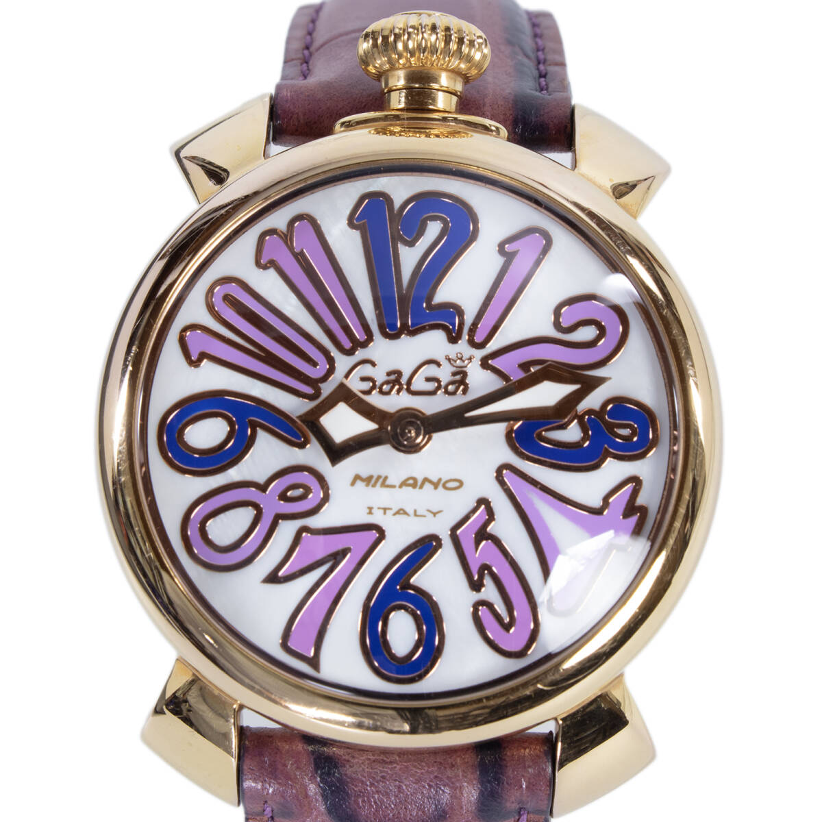 送料無料 ガガミラノ 腕時計 レディース マヌアーレ40mm 5021.4 白 紫 ネイビーブルー ピンクゴールド シェル盤 ロゴ ブランド 珍しい X355