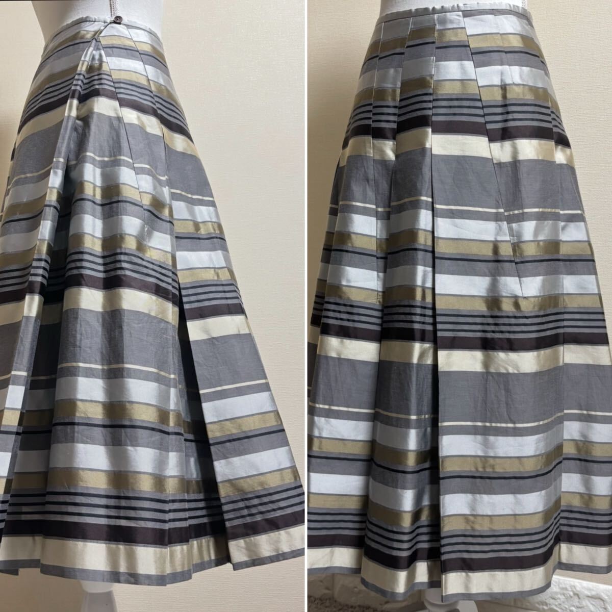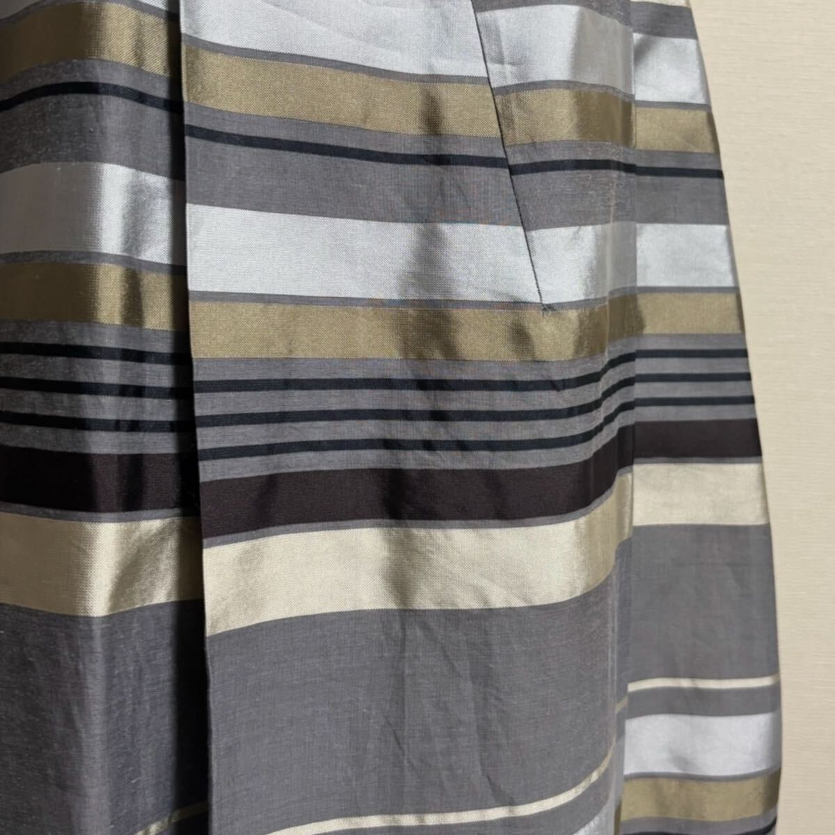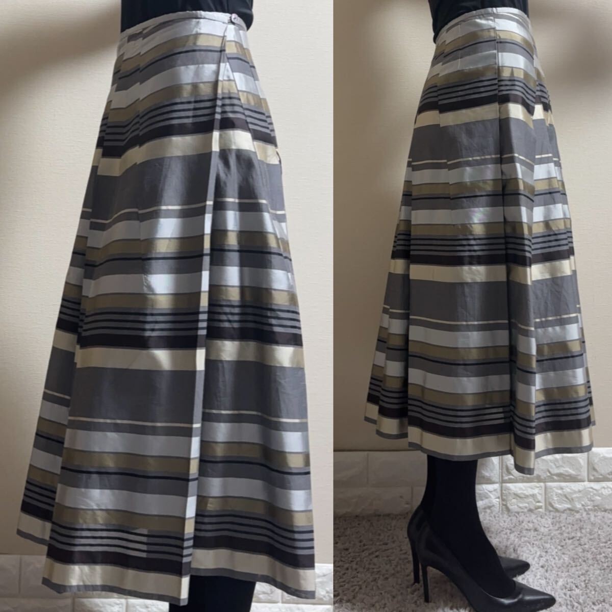 ●コットンシルク アシンメトリー切替タック入りロングフレアスカート