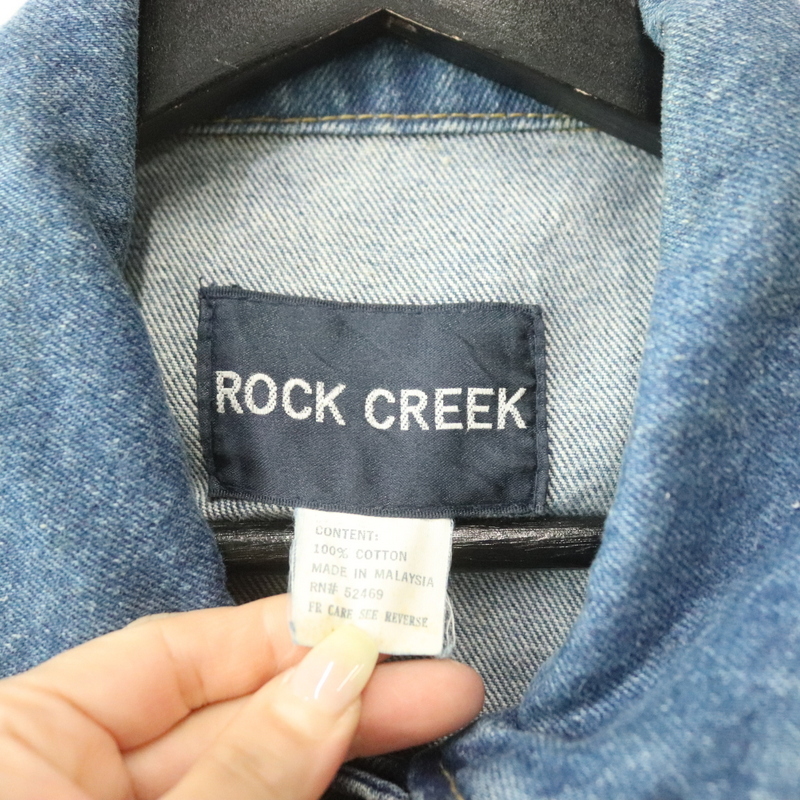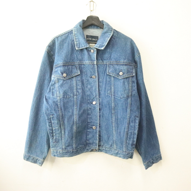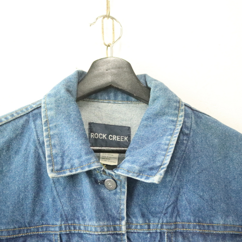 f961 90sビンテージ ROCKCREEK デニムジャケット■1990年代製 表記Sサイズ レディース ブルー Gジャン 無地 アメカジ ストリート 古着 激安