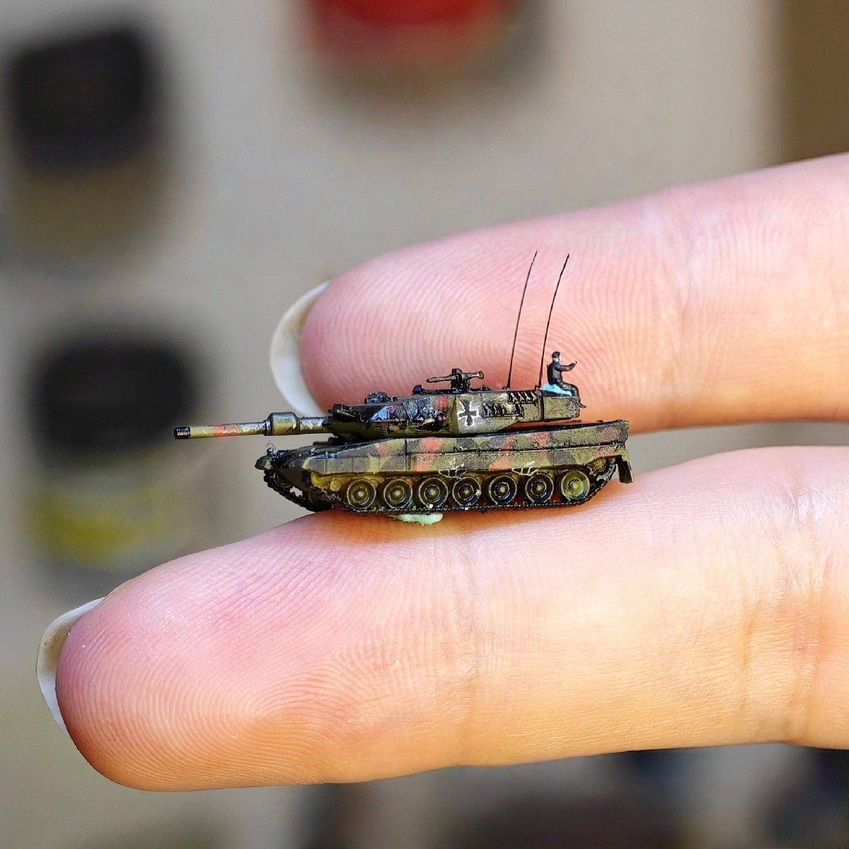 超ミニ ドイツ レオパルト2A6主力戦車 1/350 超精密塗装済み完成品 砲塔回転可能 ディオラマ付き ミリタリーモデル