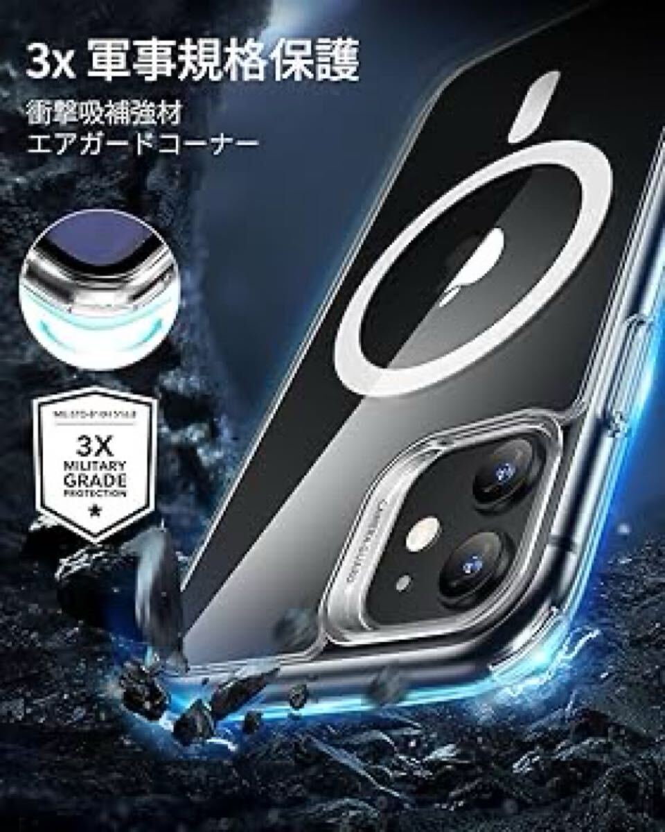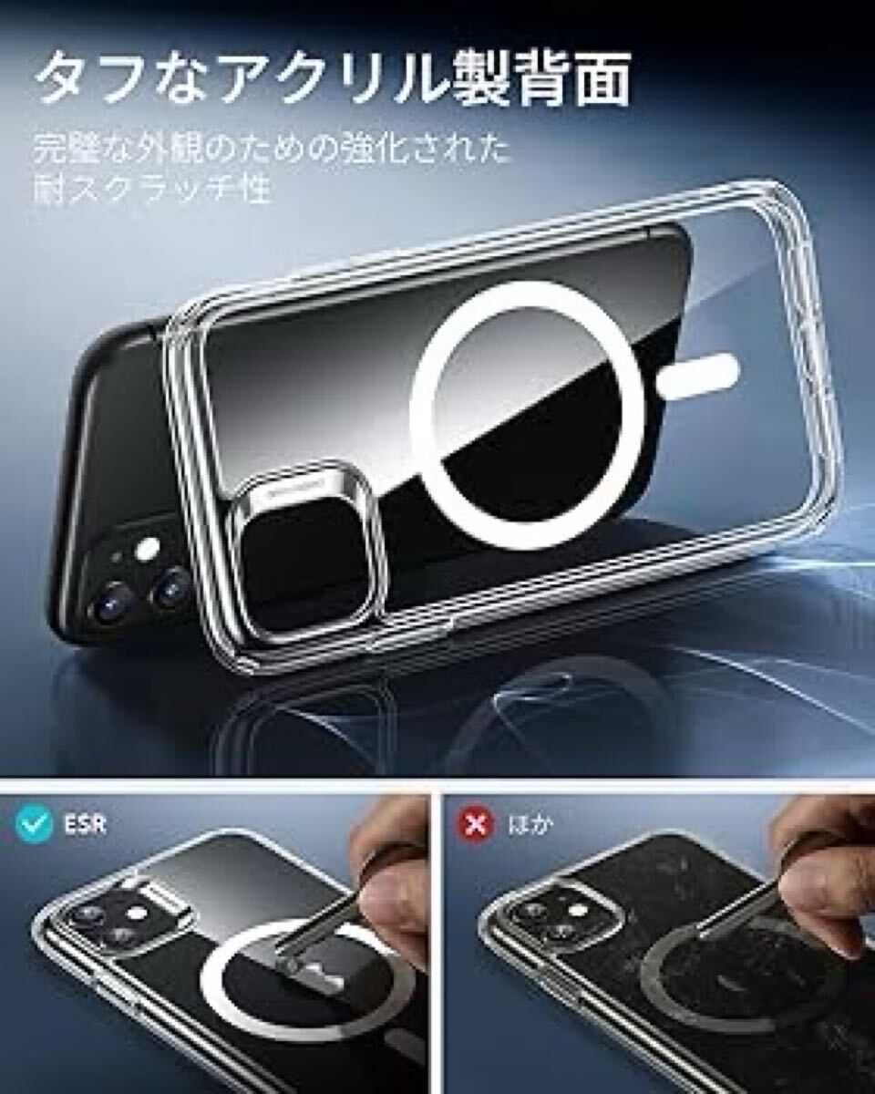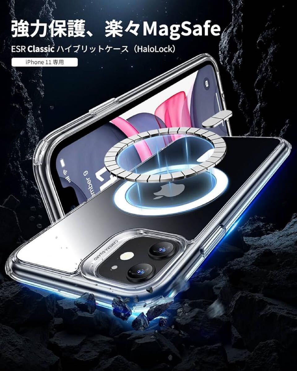 ESR iPhone11 ケース【米軍MIL規格・Magsafe対応】米軍MIL規格認証 耐衝撃 傷に強い背面 ワイヤレス充電 黄変防止 ストラップホール付き いpほね11ケース マグセーフ対応 指紋防止 滑り止め iPhone11用 6.1インチ クリア