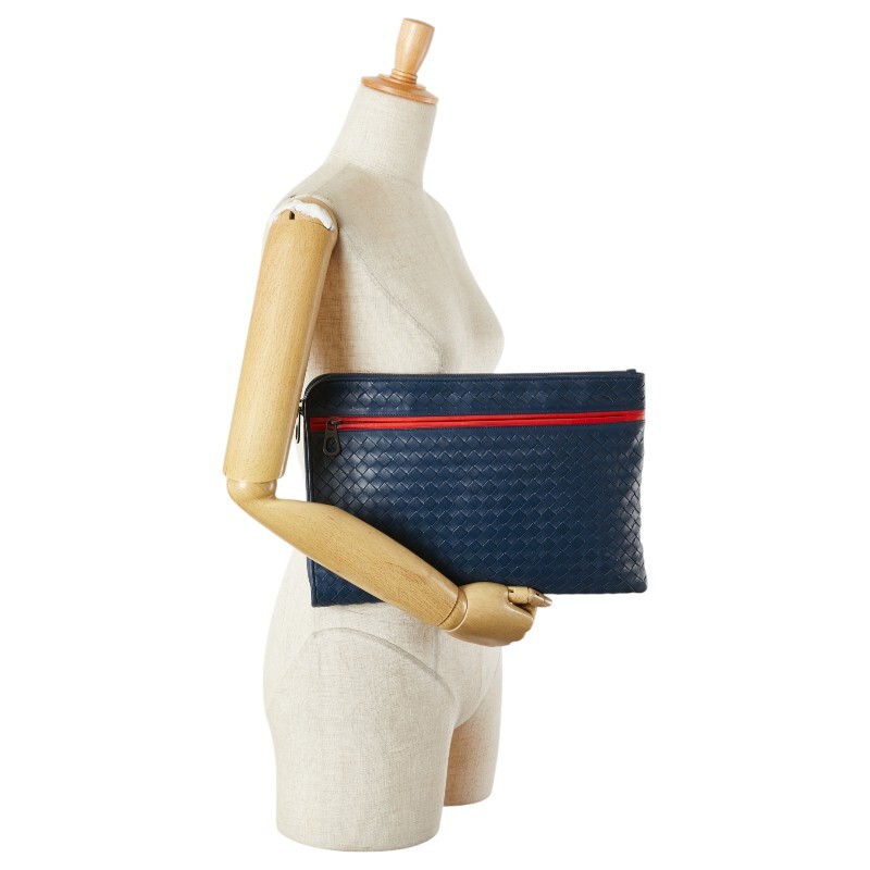 ボッテガヴェネタ イントレチャート クラッチバッグ ネイビー レッド レザー メンズ BOTTEGAVENETA 【中古】