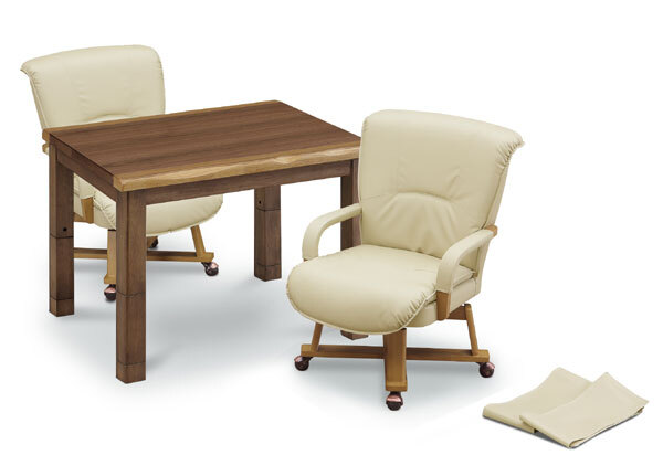 ハイタイプ高脚/ダイニングコタツ こたつ90×75センチ幅(長方形)+肘付キャスター付き椅子2脚の3点セット ダークブラウン色【こたつ】落ち着いたテイストの家具調ハイタイプこたつテーブルです。継足式でテーブル高さを68/62/45/39センチの4段階に調節できます。ロータイプとしてもソファーとセットしてもお使いいただけます。ヒーターは薄型ですからテーブルとして使用時にヒーターは外からは見えません。温度調節は手元温度コントローラー式ですので、布団に手を突っ込まなくても手元で微妙な温度調節が出来ます。省エネ、エコ暖房で電気ストーブより暖かく、電気代もお得です。【椅子】ゆったりした肘掛け付き回転いすは立ち座りが楽で、膝の痛むシルバーの方にも最適です。椅子は足元から暖気が逃げないように足カバー付きです。足カバーは簡単に取り外せます。☆落札、ご入金確認後 1~2日にて発送いたします 追加納期のかかるものは商品ページに記載いたしております よろしくお願いいたします。