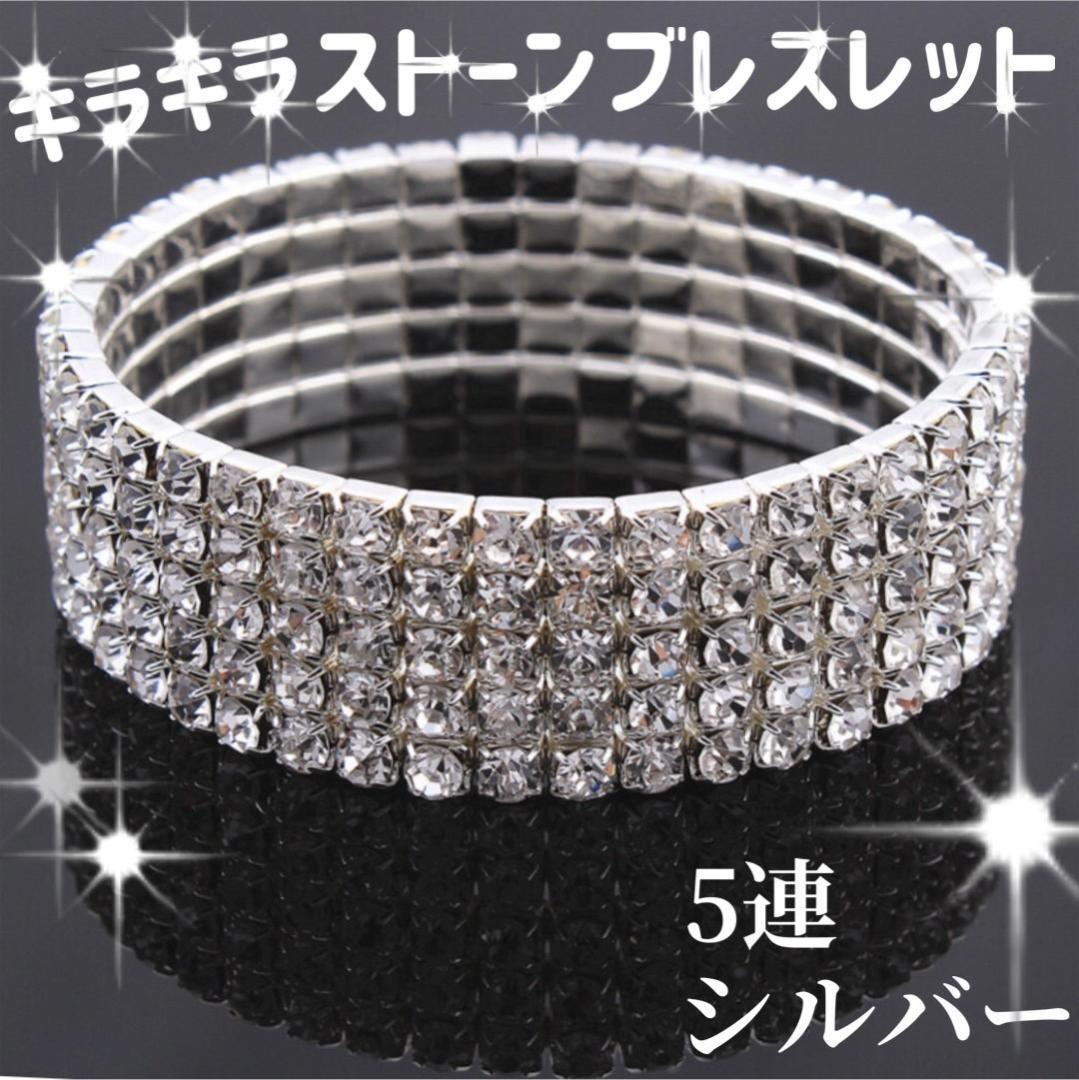 ラインストーンが、5連のキラキラ輝くラインストーンが贅沢にあしらわれたゴージャスなブレスレット