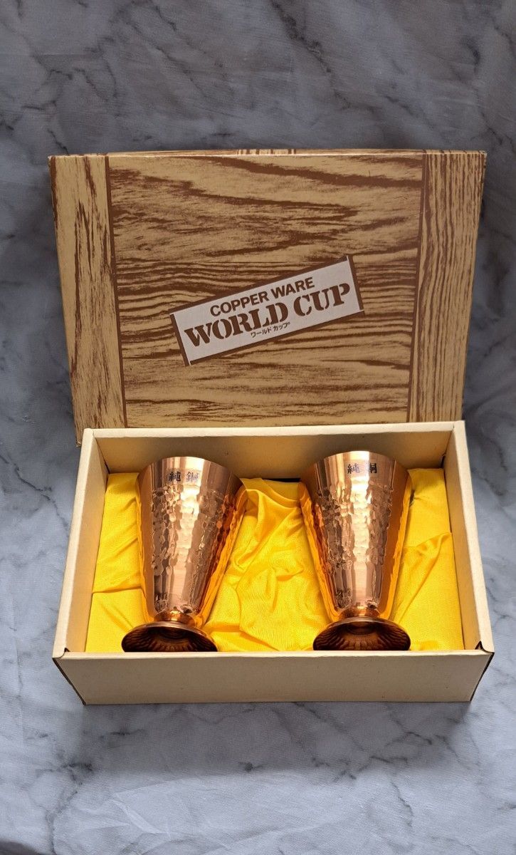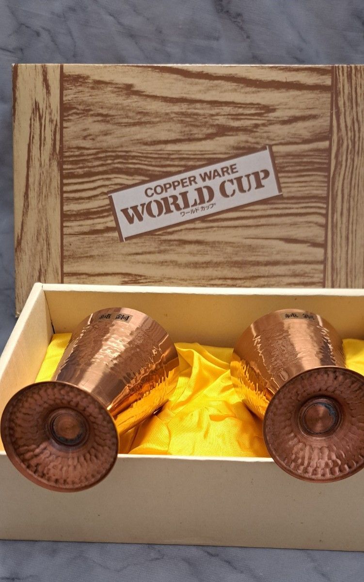 純銅製のビアカップ2個セットです。COPPER WARE WORLD CUPの記念品だと思います。