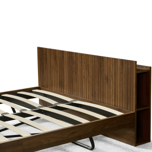 セミダブル ウォールナット色 収納付き コンセント付き USBポート付き 和風 おしゃれ ベッドフレーム 頑丈 シンプル すのこ SDセミダブル