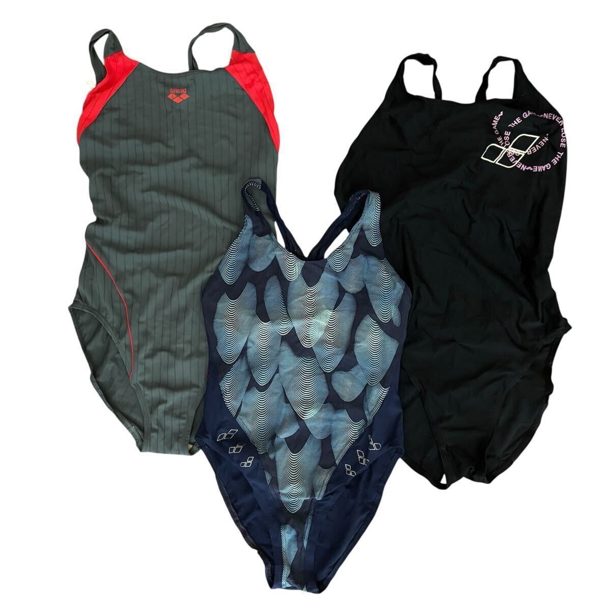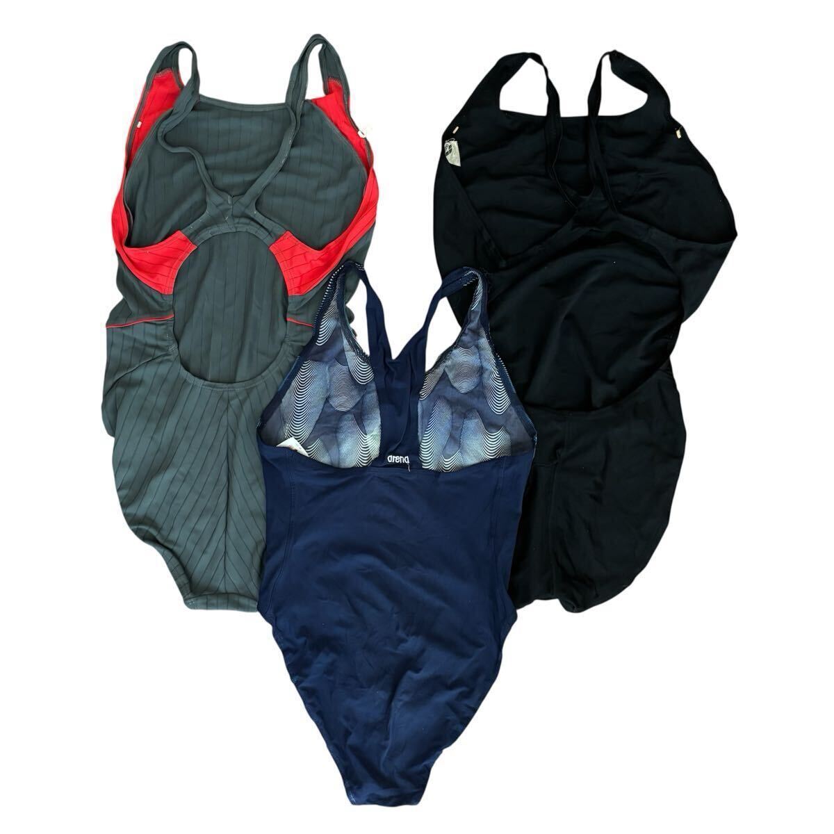 51【整理品リサイクル3枚セット】アリーナarena女子競泳水着S~XXLサイズ★オープンバック★光沢濃紺ネイビー黒ブラック赤オリーブ★男性も