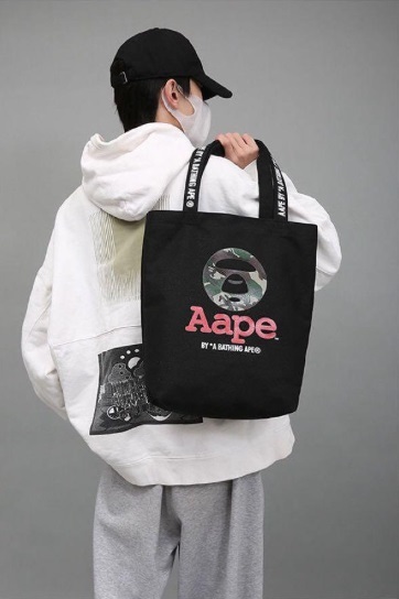 BAPE◆A BATHING APE/ブラック コットン/カレッジ ロゴ トートバッグ◆ア ベイシング エイプ◆キャンバス/エコバッグ/付録ノベルティ