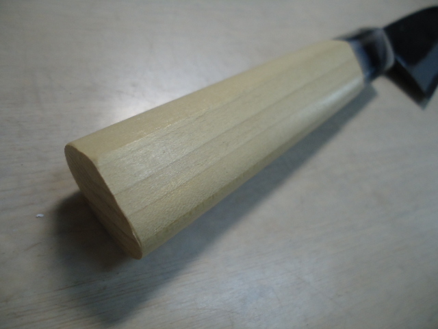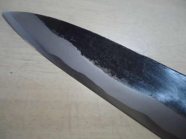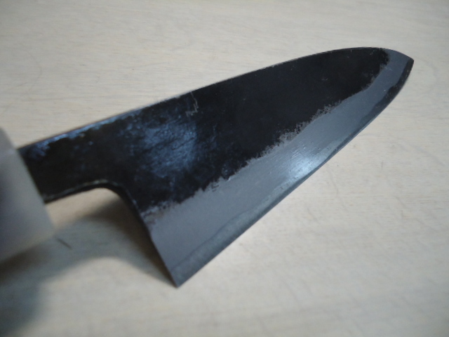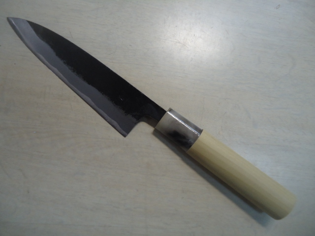 商品説明 | ご面倒でも必ず注意事項等お読みの上、ご入札ください。トラブルの元です 営業日以外連絡発送できません!従って送料連絡も営業日・営業時間内になります。 《店休》 土日祭日 年末年始・12月23日~1月7日 ゴールデンウイーク 盆 8月13日~16日 土佐鍛冶屋 邑田武男作 手打ち鍛造手造り 魚の【サバキ】に重宝 両刃だから右利き左利き問いません 刃渡り 135mm 重量 97g 厚さ 約4mm 最大幅 約36mm ☆ 備 考 新品の刃物は・・・ *本来刃物はメーカーより機械研ぎで入荷します。砥石で研いだ刃物の入荷は殆どありません。もちろん新品の切れ味はありますが、本当の切れ味をお望みであれば・・・ 新品もまず砥石で研いでご使用された方が、本来の切れ味が楽しめます。 本刃付けも承っております。ご希望の方は取りナビにてご連絡ください。 【6000番仕上げ砥石】三徳包丁 700円~ 出刃・刺身 900円~材質・サイズによって変わります。 手研ぎの為研ぎ跡が必ず付きます! 在庫管理に努めておりますが、店舗で販売もしておりますので、万一品切れの際はキャンセルさせて頂くか、お待ちいただく場合がございます。 | |