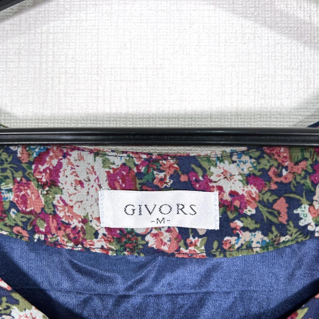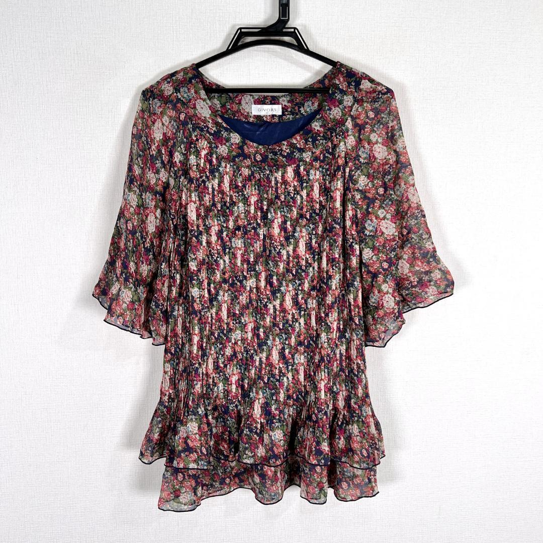【GIVORS】ジボール クロスプラス ネイビー系 花柄 五分袖 チュニック カットソー トップス 女性用 レディース Mサイズ【a029】