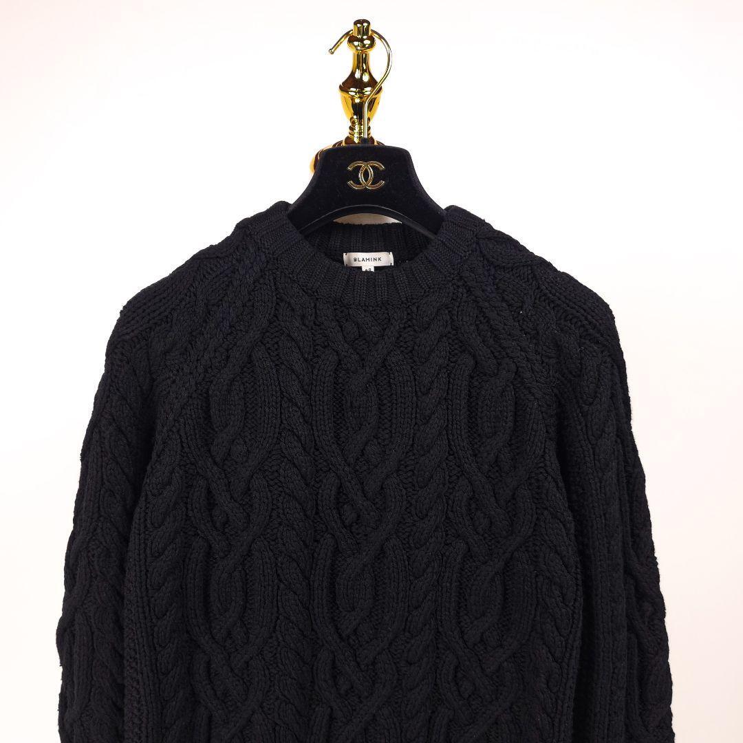 【新品同様】ブラミンク カシミヤ 100% ケーブル ニット ブラック 38 BLAMINK