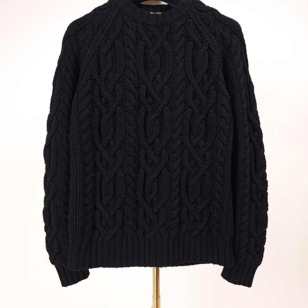 立体的なケーブル編みデザインがシンプルながら存在感を放ち、カジュアルからきれいめスタイルまで幅広く活躍します。