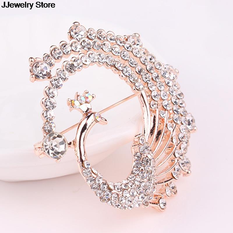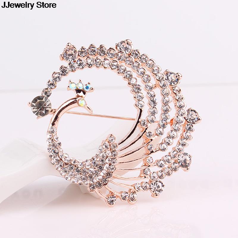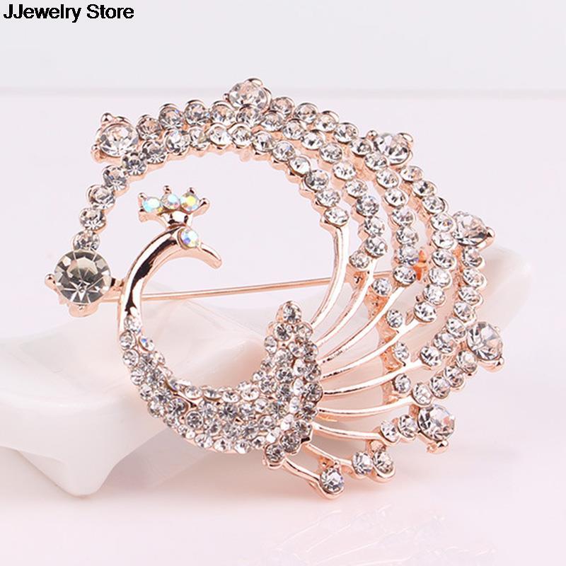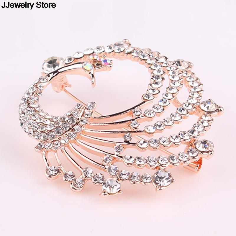 古典的なクリスタル孔雀のブローチピン シャイニングラインストーン すぐにお届けできます。  ウェディング コスチュームジュエリー