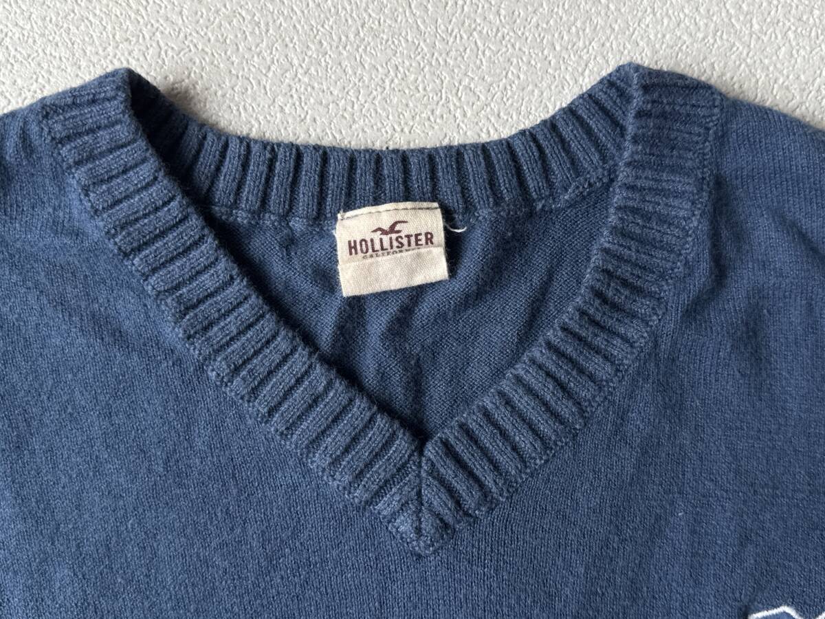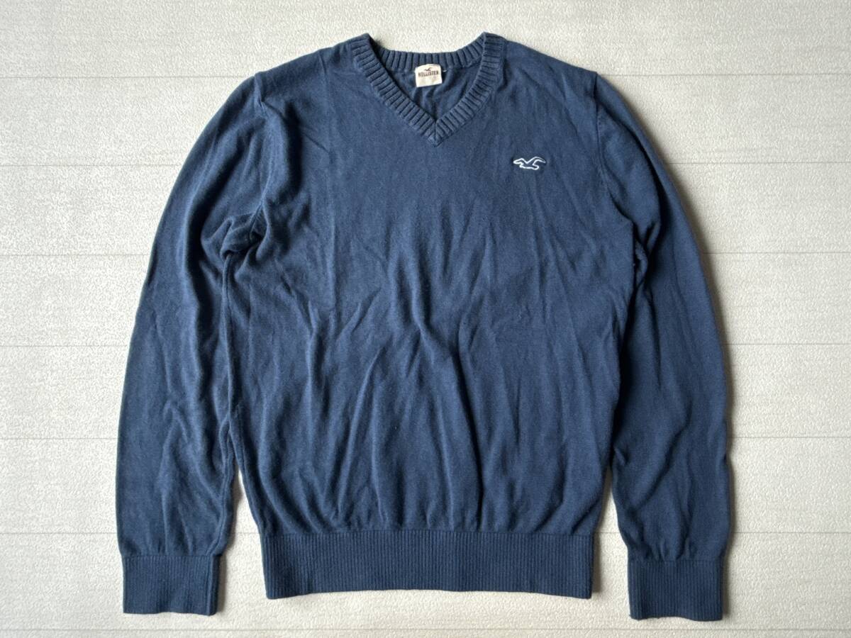 ☆送料無料☆ HOLLISTER ホリスター 古着 Vネック ロゴ ニット セーター メンズ S ネイビー系 トップス 中古 即決