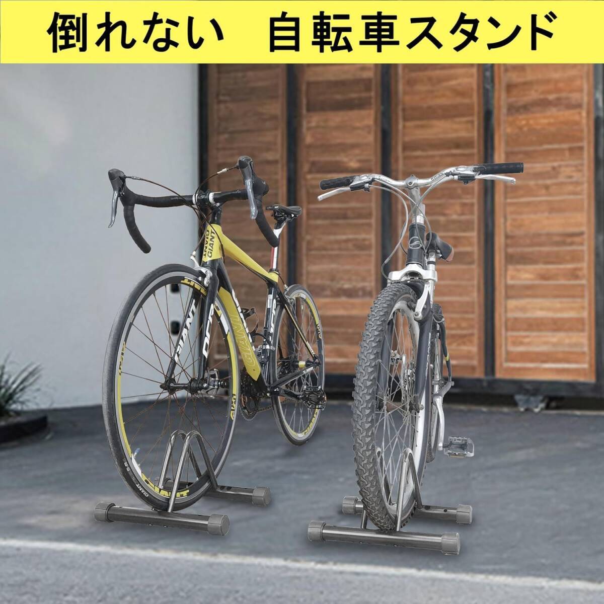 強風が吹いても転倒する心配がなく、キックスタンドが付いていない自転車を
