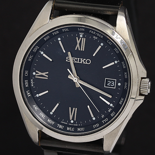 1円 稼働 セイコー 7B75-0AB0 電波ソーラー ブラック文字盤 メンズ腕時計 9726000 9YBY SMZ