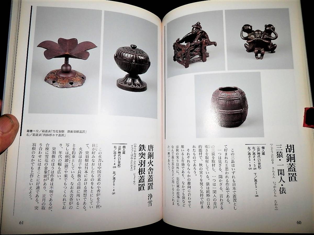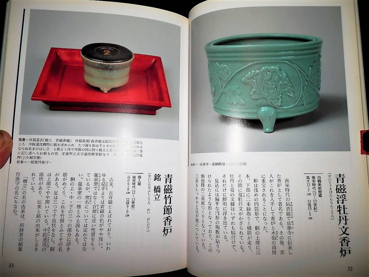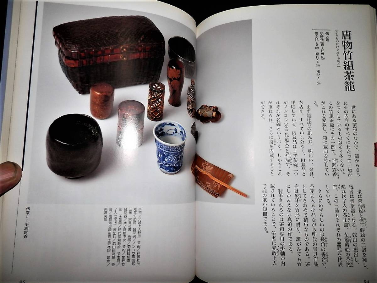 ■■『雑誌』・・・■■ ■■『茶道具の世界-14』・・・■■ ●●「諸道具」・・・●● ―”香炉・茶壺・蓋置・炉縁・煙草盆・茶箱・名物裂”― ◆責任編集-小田榮一。 ◆淡交社。 ―”カバー内側に”― ★茶の湯の道具を愛好する人びとにとって・茶道具はた いせつな位置をしめています。 それは・茶の湯のはじまりから今日まで・茶道具が・ 席主の思いを体現するものであり・長い茶の湯の歴史 によって磨き上げられた・用と美の結晶だからです。 このたび・淡交社50周年記念として出版する本前週 は・茶道具の魅力を集結しました。 ◆カバー写真-時鳥蒔絵籐組茶箱。 ―”編集委員”― ◆池田巌・(漆芸家)。 ◆小田榮一・(茶道研究家)。 ◆矢部良明・(東京国立博物館工芸課長)。 ◆楽吉左衛門・(陶芸家)。 ―”図版協力”― ◆出光美術館。 ◆MOA美術館。 ◆小田榮一。 ◆香雪美術館。 ◆サントリー美術館。 ◆静嘉堂文庫美術館。 ◆東京国立博物館。 ◆徳川美術館。 ◆根津美術館。 ◆白鶴美術館。 ◆畠山記念館。 ◆藤田美術館。 ◆萬野美術館。 ■発行日=平成12年12月2日・(初版発行)。 ■発行所=株式会社・淡交社。 ■サイズ=15×21cm。 ■表紙カバー。 ■定価=1714円+税。 ■状態。 ●表紙に・多少の・キズ・ヤケが有ります。 ●本誌内に・多少の・ヤケが見えますが ●大きなダメージは・無く ●年代的には・良い状態に思います。 ◆◆注意・・・◆◆ ★発行日より・経年を経て下ります。 コンディションに係らず・古書で有る事を 充分に御理解の上・御入札下さい。 ★神経質な方の入札はご辞退下さい・・!! ●全・164頁・カラー・上質紙・・・!! ●図版・頁に・・・!! ◆作品名/所蔵/制作年/伝来/他。 ◆解説。 ◆*箱書の解説。 ★本初収録の作品名称は原則的に責任編集者の呼称 にしたがった。 ★解説文中に付した*印は巻末の用語解説の収録し た項目を示す。 ★収録データー中の伝来は・直接・間接に関わらず すべて-で表記した。 ●蒐集・資料などの・参考に・・・!! ●探されていた方は・この機会に・・・!! ●以下・詳細をご覧ください・・・!! ◆掲載案内は・抜粋し掲載して下ります。 ◆掲載内容は・Q&Aより・問い合わせ下さい。 ◆数字記載は目視です・間違いは御容赦下さい。 ◆掲載を抜粋紹介し・「タイトル」・と致します。 ■■■■■■■■■■■■■■■■■■■■■■■■■■■ ★★★★★★★★★★★★★★★★★★★★★★★★★★★ ■■「諸道具の鑑賞のしるべ」・・・■■ ●香炉と日本人。 ●蓋置と材質。 ◆金属・(古銅・鉄)。 ◆陶磁器・(青磁・染付・京焼・他)。 ◆竹・(竹材・交趾・染付・御本・他)。 ◆日本注文の蓋置。 ●●「拝見・諸道具」・・・●● ―”茶道具の世界――作品解説”― ●「香炉」・・・● **”(15点)”** ◆鉄鶏香炉。 ・明珍家十七代信家作。 ・室町時代。 ・個人。 ―”箱書”― ★内箱蓋表=「明珍信家作・鉄鶏香炉」。 ★外箱蓋表=「月八四十一甲鍛冶・小田原信家 作・鶏香炉」。 ◆唐銅鶉香炉。 ・江戸時代。 ・個人。 ◆青磁透彫二階堂香炉。 ・明時代。 ・根津美術館。 ◆青磁袴腰香炉。 ・重要文化財。 ・南宋時代。 ・出光美術館。 ◆青磁浮牡丹香炉。 ・南宋時代。 ・白鶴美術館。 ◆青磁竹節香炉・銘・「橋立」。 ・南宋時代。 ・個人。 ◆青磁水鳥香炉。 ・明時代。 ・個人。 ◆安南染付耳付香炉。 ・ベトナム。 ・個人。 ◆薩摩松竹梅絵牛鈕香炉。 ・江戸時代。 ・個人。 ◆阿吽獅子香炉。 ・常慶作。 ・江戸時代。 ・香雪美術館。 ◆秋草蒔絵香炉。 ・室町時代。 ・サントリー美術館。 ●「茶壷」・・・● **”(13点)”** ◆唐物茶壷・銘・「金花」。 ・大名物。 ・南宋-元時代。 ・徳川美術館。 ◆唐物茶壷・銘・「松花」。 ・大名物。 ・南宋-元時代。 ・徳川美術館。 ◆唐物茶壷・銘・「判官」。 ・名物。 ・元-明時代。 ・徳川美術館。 ◆唐物茶壷・銘・「夕立」。 ・名物。 ・南宋-元時代。 ・徳川美術館。 ◆唐物茶壷・銘・「大般若」。 ・名物。 ・南宋-元時代。 ・徳川美術館。 ◆唐物茶壷・銘・「煎餅」。 ・大名物。 ・南宋-元時代。 ・個人。 ◆唐物茶壷・銘・「羽衣」。 ・大名物。 ・明時代。 ・出光美術館。 ◆瀬戸茶壷・銘・「隠里」。 ・室町時代。 ・香雪美術館。 ◆瀬戸茶壷・銘・「初時雨」。 ・大名物。 ・室町時代。 ・徳川美術館。 ◆色絵藤花文茶壷・銘・「羽衣」。 ・仁清作。 ・国宝。 ・江戸時代。 ・MOA美術館。 ◆色絵梅月文茶壷。 ・仁清作。 ・重文。 ・江戸時代。 ・東京国立博物館。 ◆色絵吉野山図茶壷。 ・仁清作。 ・重文。 ・江戸時代。 ・静堂文庫美術館。 ◆色絵山寺図茶壷。 ・仁清作。 ・重文。 ・江戸時代。 ・根津美術館。 ●「蓋置」・・・● **”(15点)”** ◆千利休・竹蓋置。 ・千利休在判。 ・桃山時代。 ・根津美術館。 ◆佐久間将監・竹蓋置・銘・「月代」。 ・江戸時代。 ・個人。 ◆胡銅色絵三つ人形蓋置。 ・明時代。 ・個人。 ◆胡銅笹蟹蓋置。 ・明時代。 ・個人。 ◆胡銅十二市