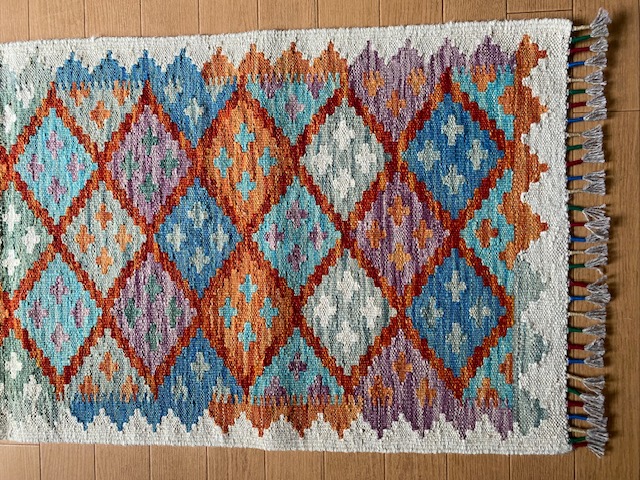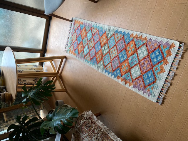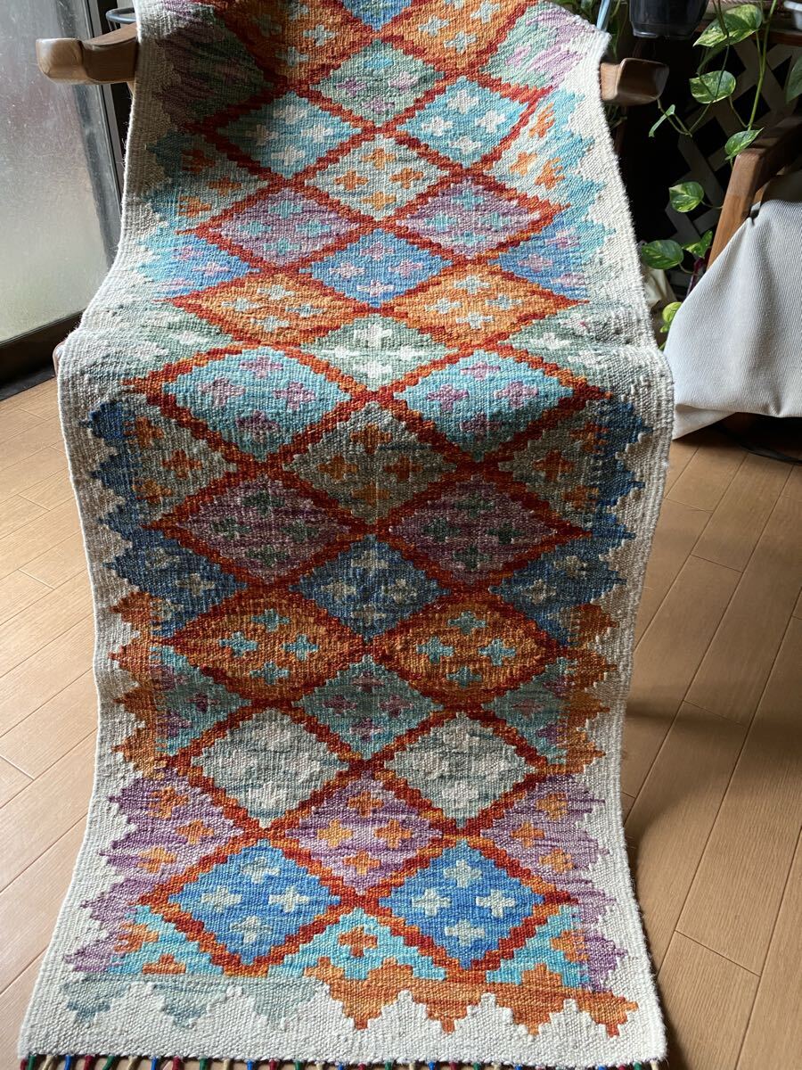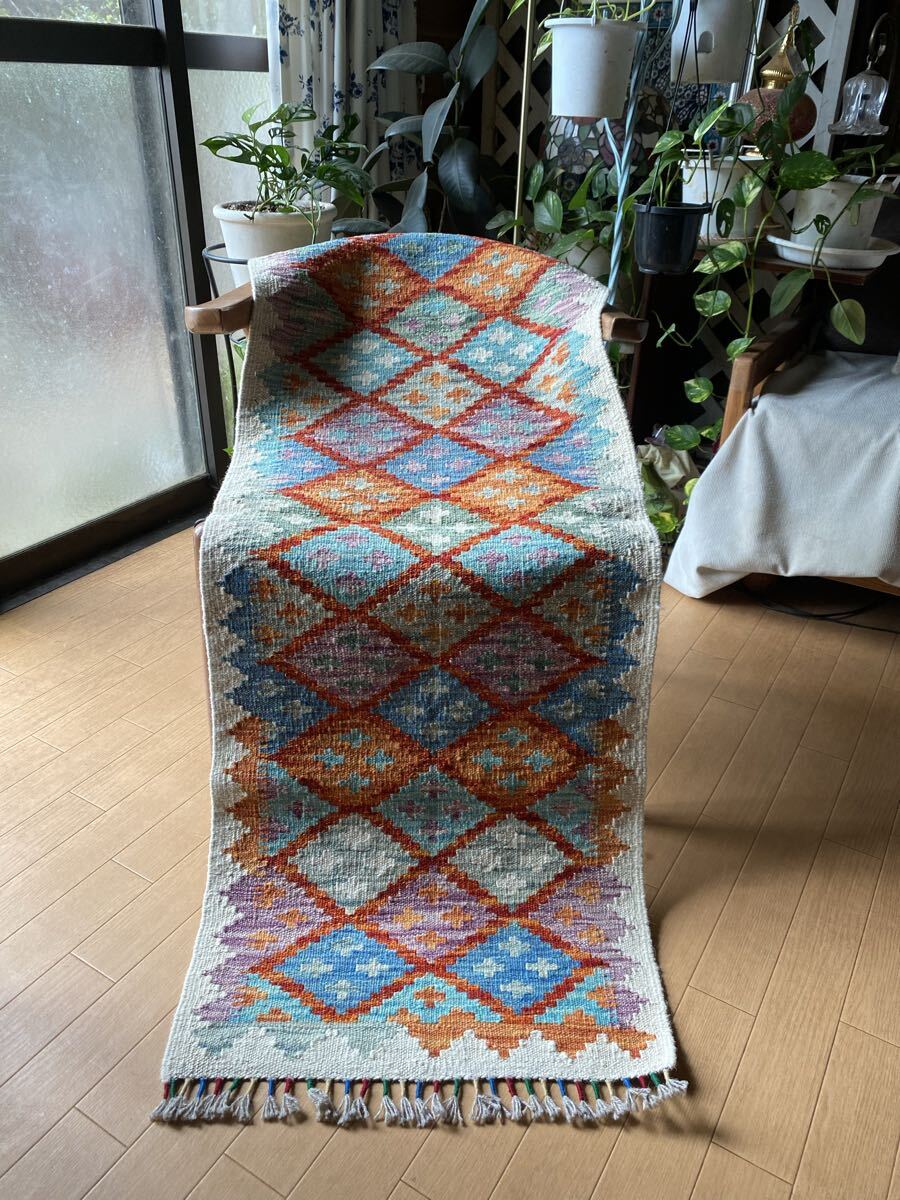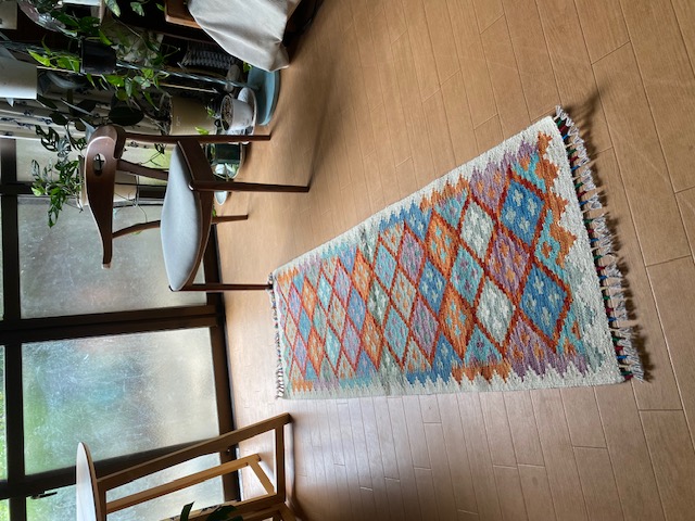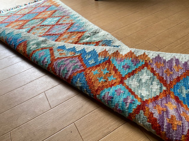 初めてのキリムはこちら!アフガニスタンの手織り草木染リバーシブルのキリム!センスの良い素敵なキリム選びました!お部屋の模様替えに!