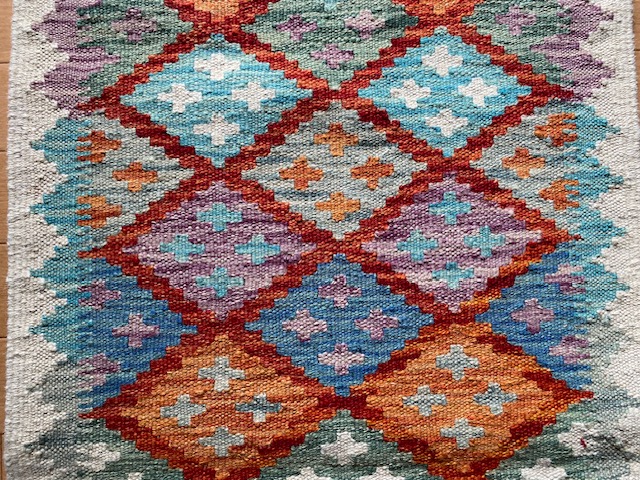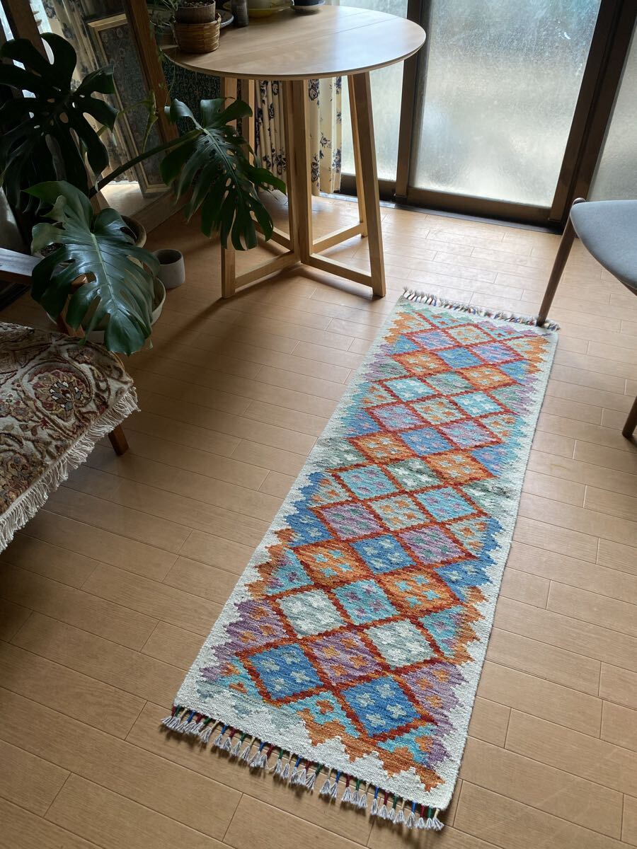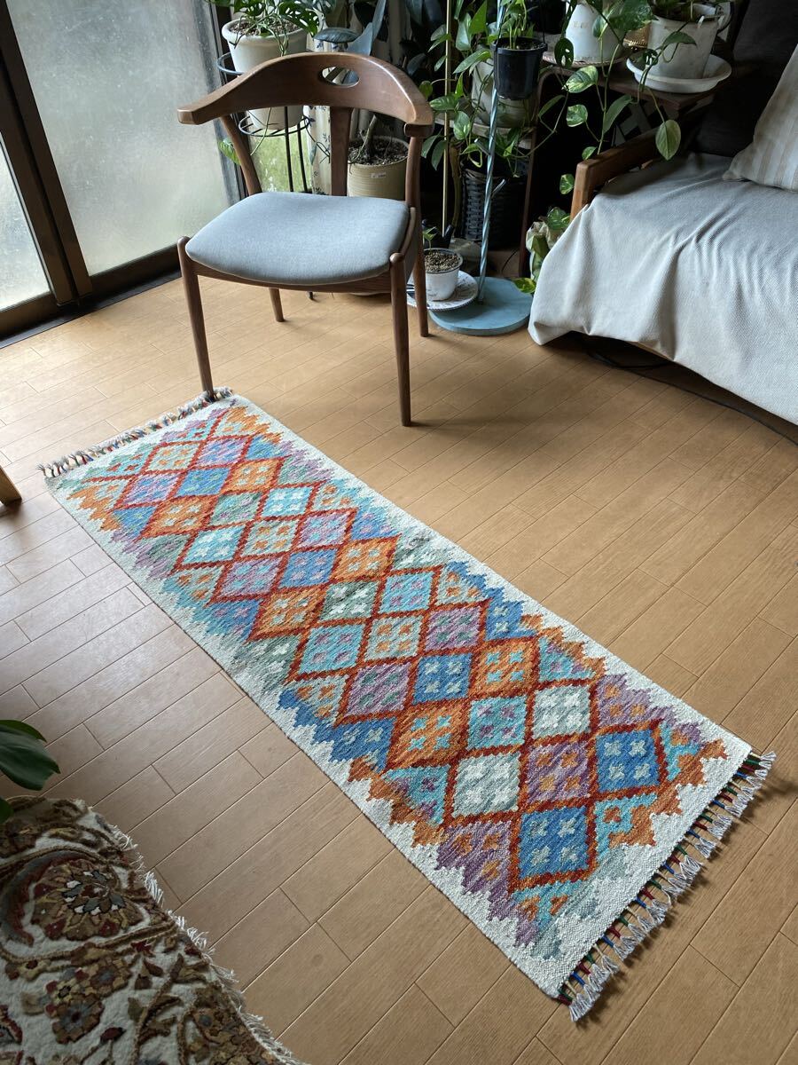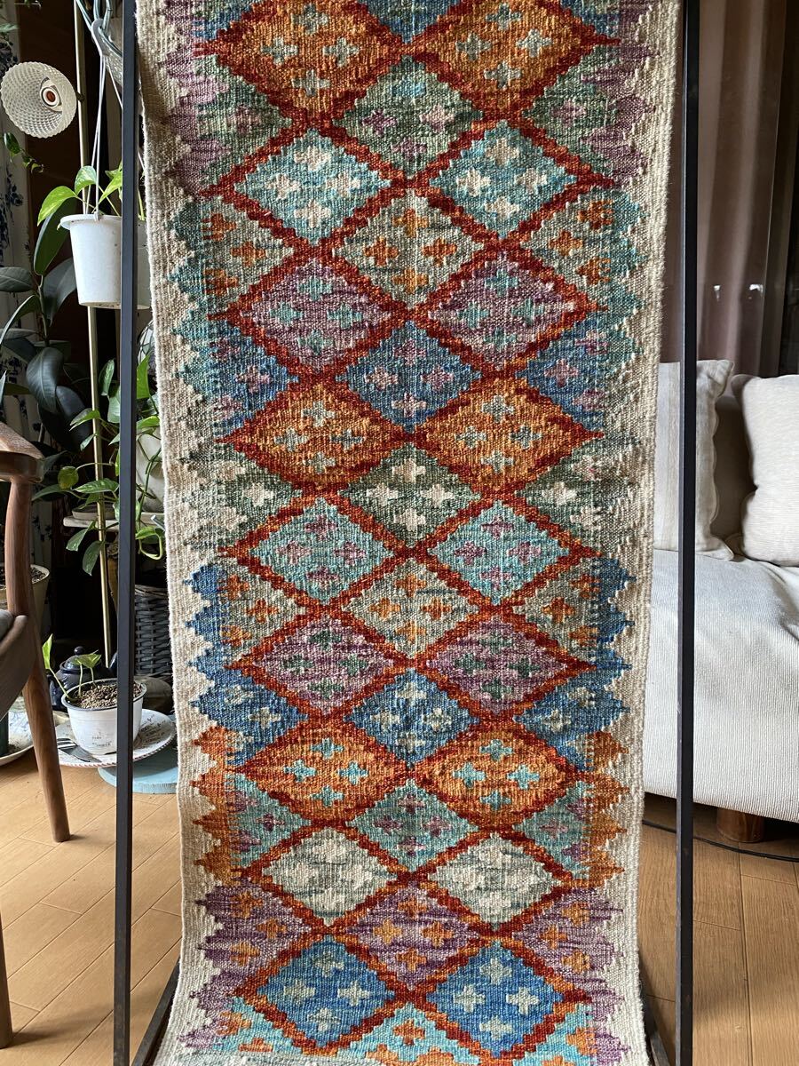 初めてのキリムはこちら!アフガニスタンの手織り草木染リバーシブルのキリム!センスの良い素敵なキリム選びました!お部屋の模様替えに!